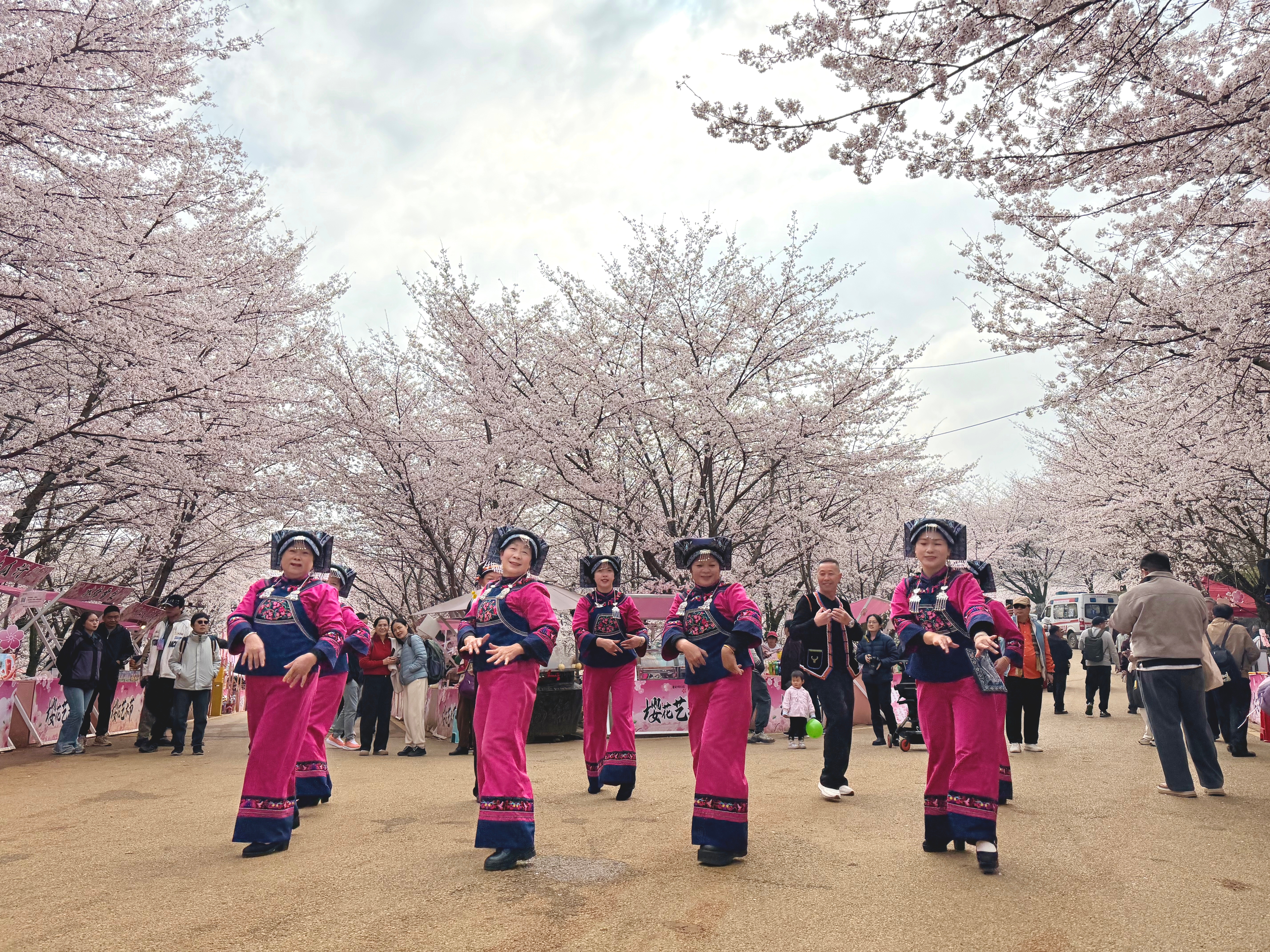 “从动听的山歌到精彩的地戏,从欢快的芦笙到热烈的非洲鼓,各种表演轮番登场,真是一步一景、一景一演。”广东游客王女士表示,丰富的文化表演让赏樱之旅变得更加有趣。