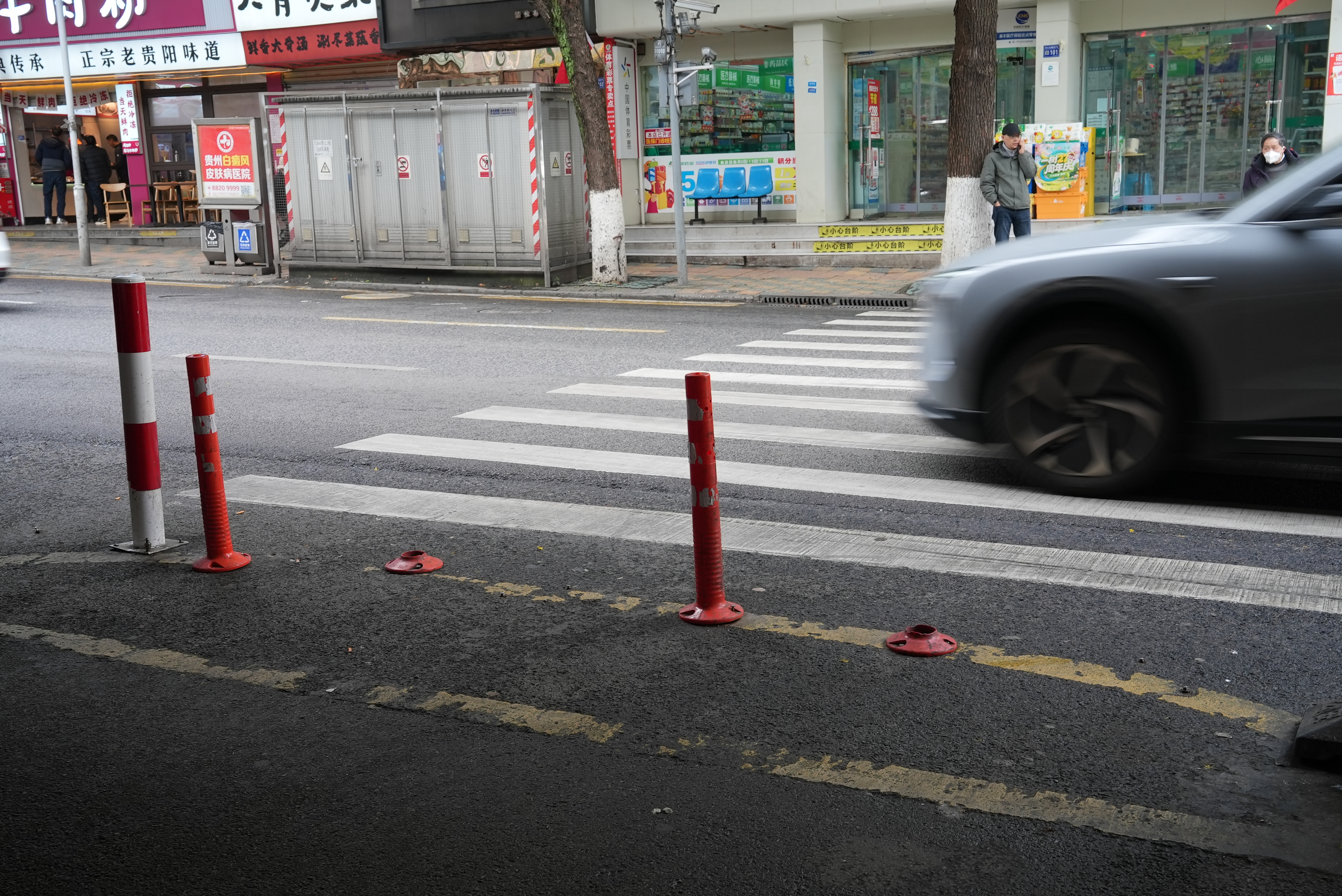 贵阳网·甲秀新闻讯在贵阳的街头巷尾,随处可见立在斑马线两侧的小小反光柱,它们是守护行人过街的一道贴心屏障——既能提醒车辆减速慢行,也能为非机动车和行人之间隔出安全距离。近日有市民反映,宝山北路一处过街斑马线两侧反光立柱缺失,导致电动车、摩托车随意穿行,行人过街时常要和车辆“抢道”,存在安全隐患。接到反映后,贵阳融媒问政记者赶赴现场走访。