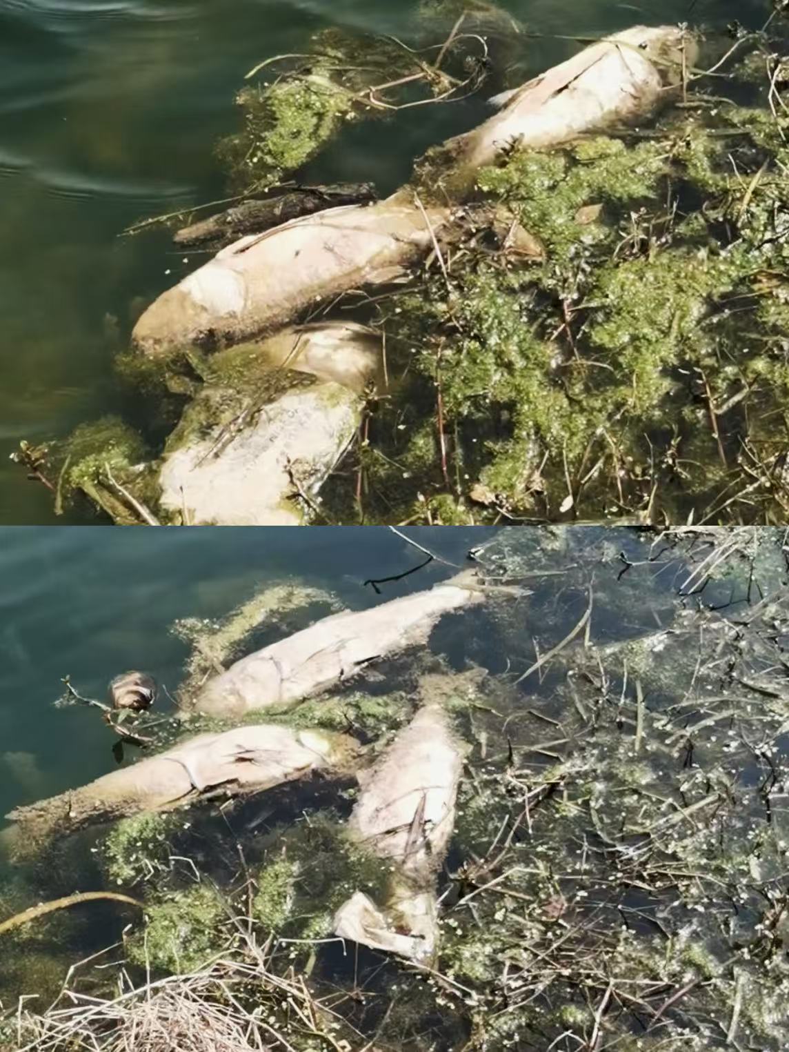 图为反映人江先生提供的现场照片,死鱼密集漂浮