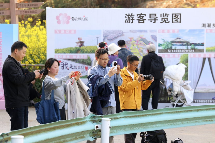 3月12日,“花漾高峰 樱你梅丽”2026年贵安樱花季媒体采风活动走进贵安樱花园。新华社、人民网、光明网等18家媒体20余名记者齐聚万亩花海,共赴春日之约。
