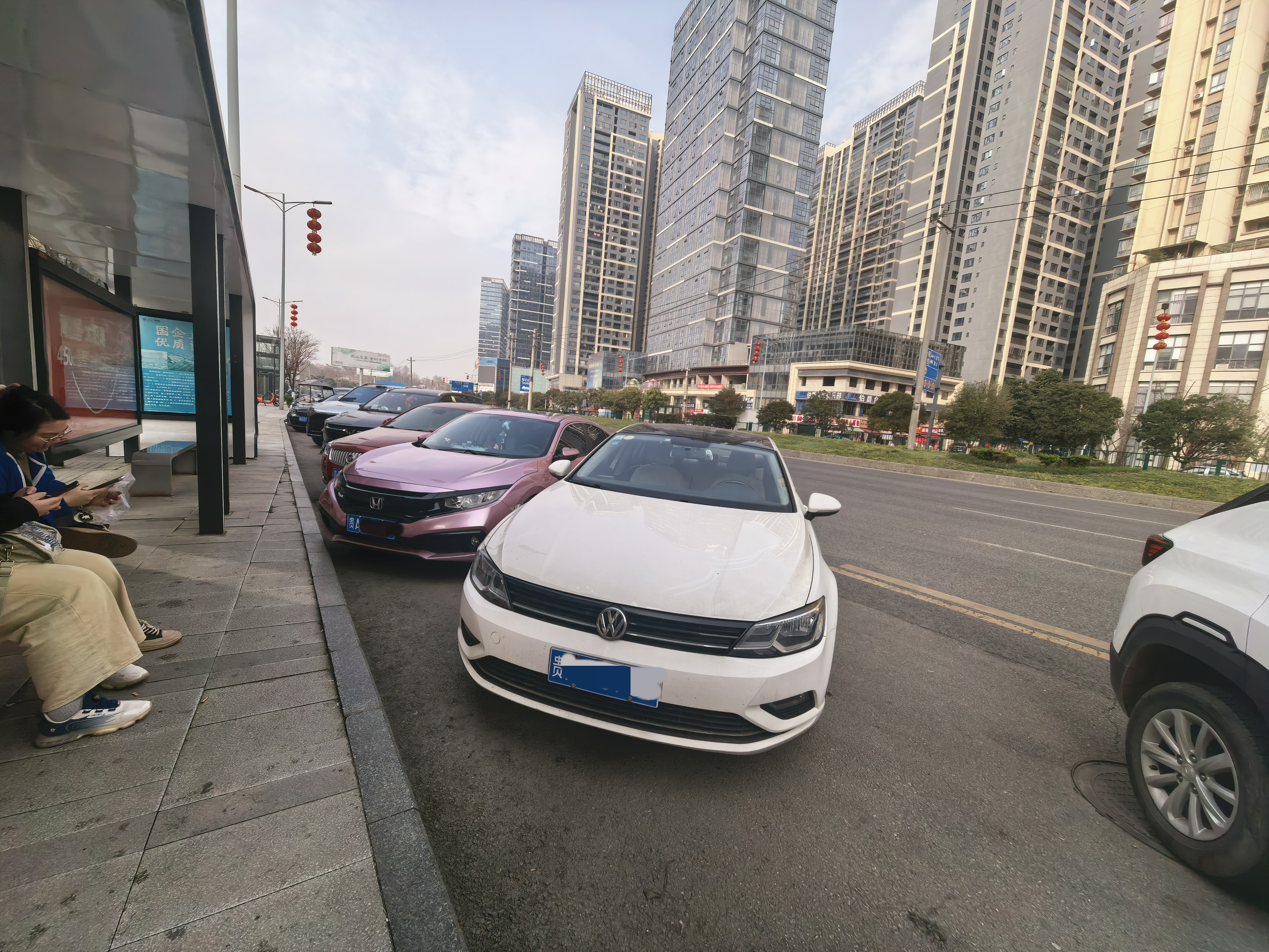 白云区政务服务中心公交车站(西站)道路旁停满私家车