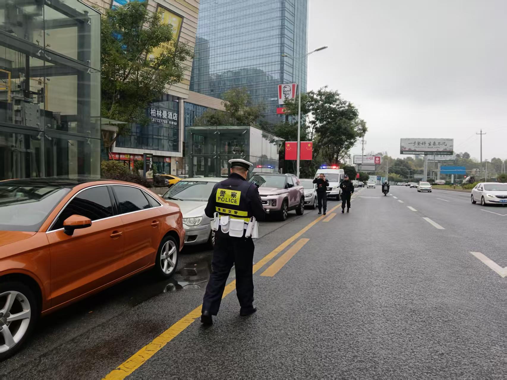 交警对违停车辆进行治理