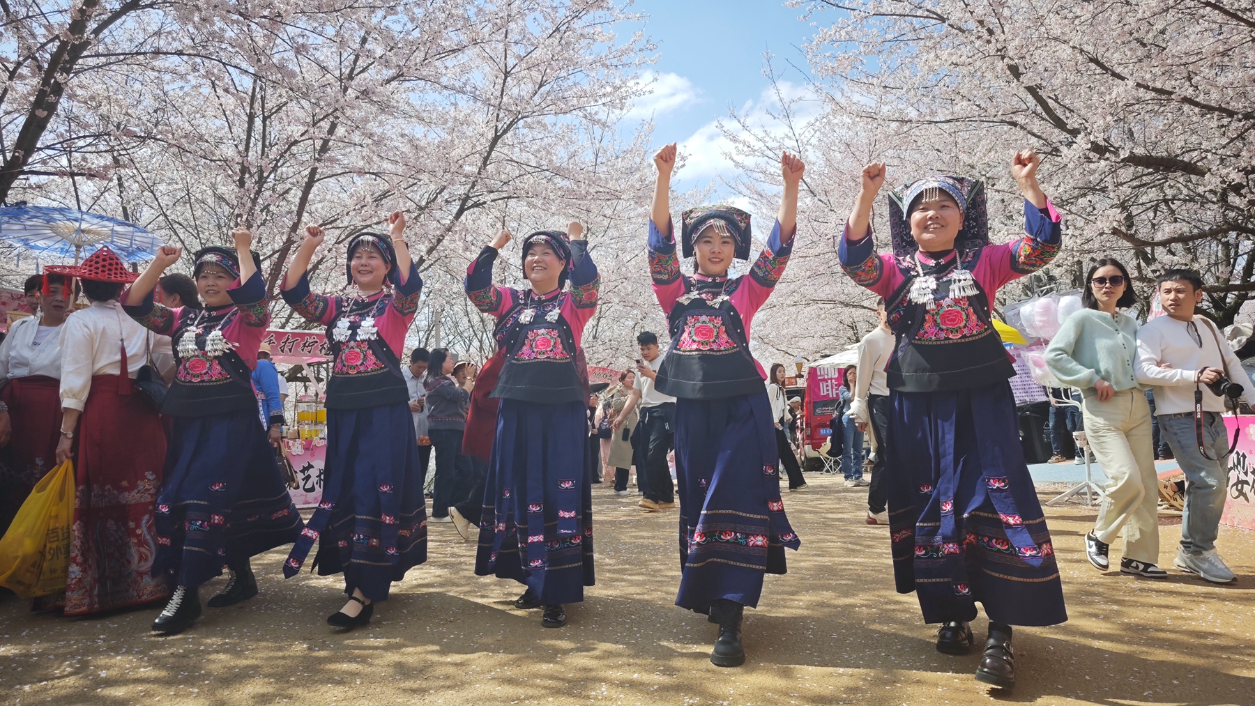 随着“赏花+演绎”系列特色活动的开展,不仅丰富了游客的游览体验,让人们在欣赏自然美景的同时,近距离感受了多彩的民族文化魅力,也通过这种互动性极强的形式,拉近了艺术与大众的距离,让文化在欢乐的氛围中得以传播和共享。在这片被樱花点缀的春日胜景中,民族文化与自然风光交相辉映,共同谱写出一曲和谐美好的春日乐章。