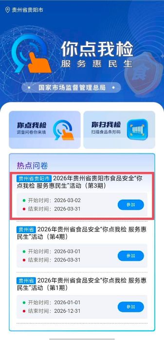 2026年贵阳市食品安全“你点我检 服务惠民生”活动(第[3]期)