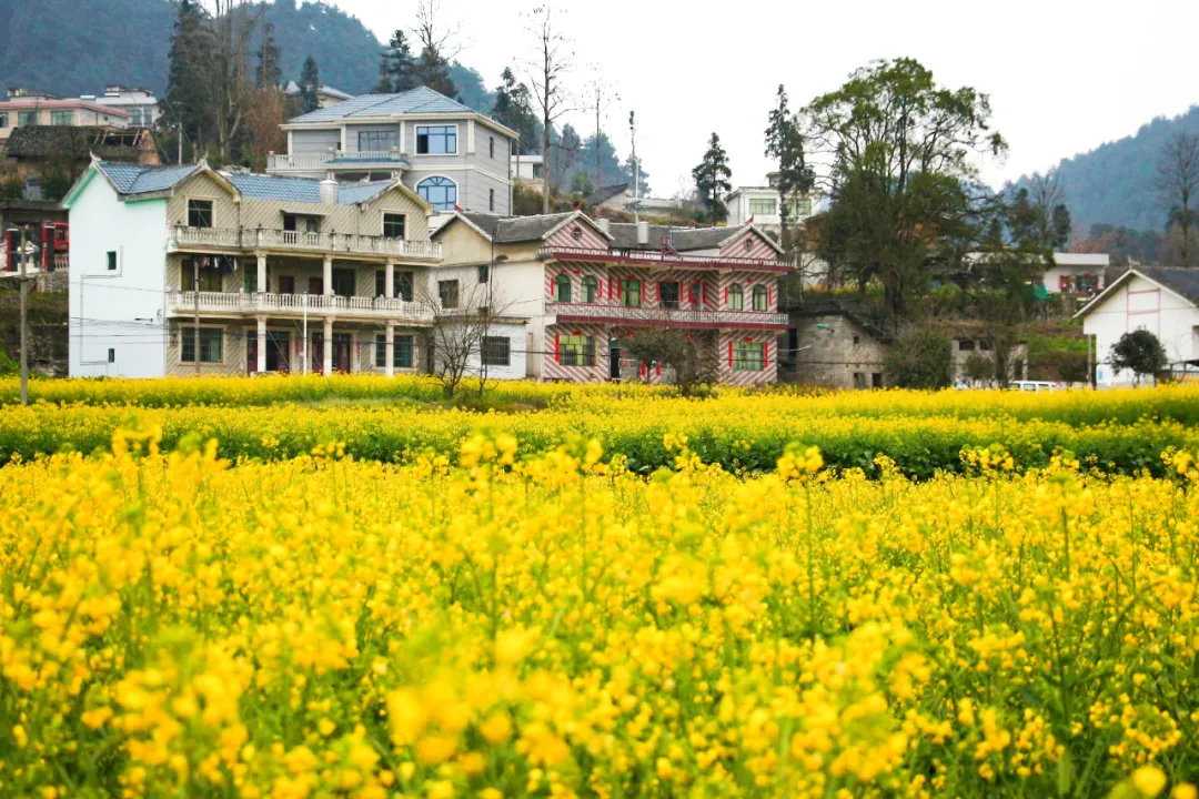 前奔村连片的花海, 是春日里不可错过的赏花秘境。金黄的油菜花与雪白的梨花、李花相映成趣,花开满寨,馨香四溢。悠闲漫步在田园间,看春风拂过花枝,听村落里的温柔烟火,能忘掉所有的烦恼。