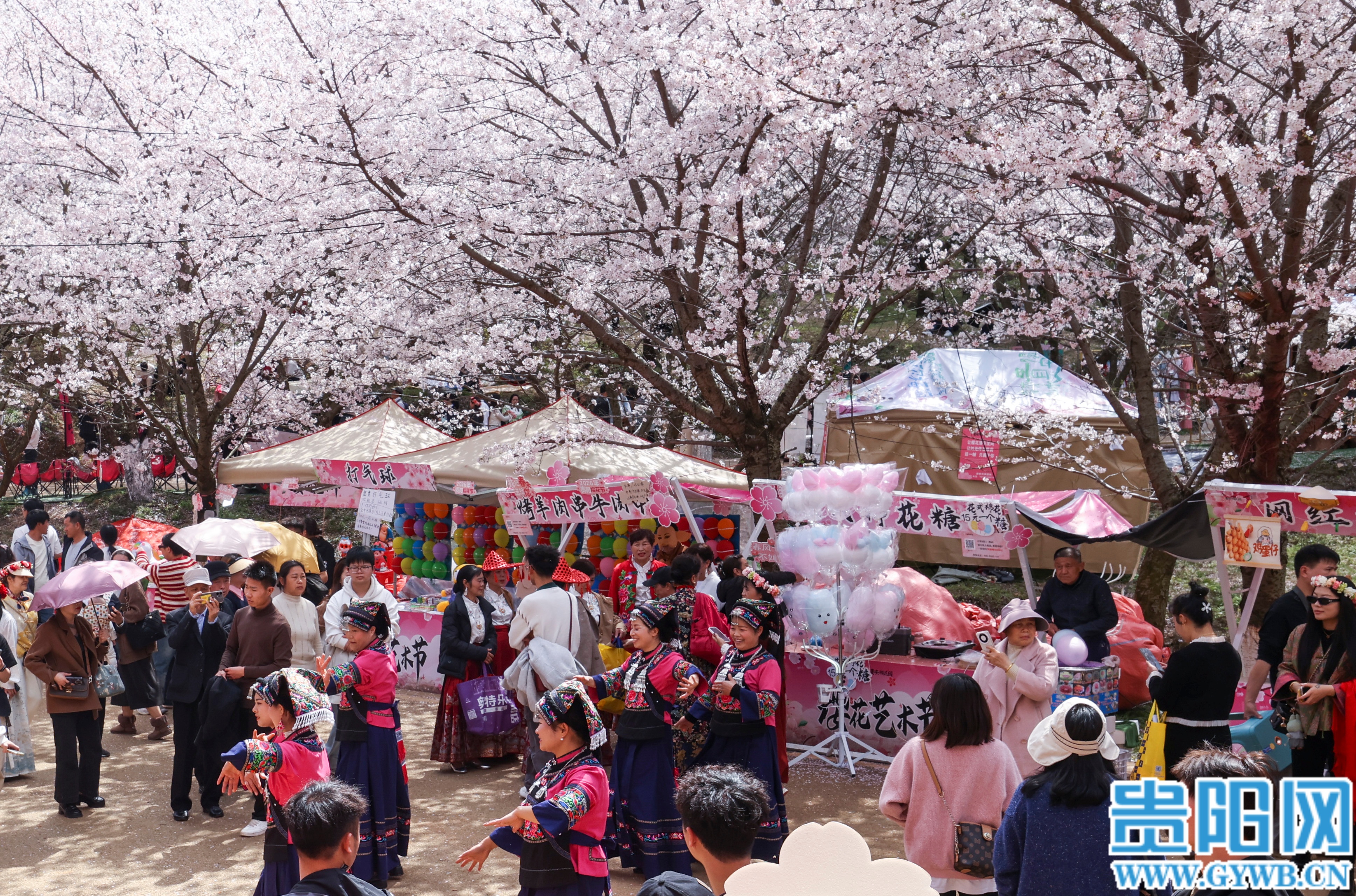 从非遗展演、民俗互动到音乐狂欢,贵安樱花季用丰富多元的文化体验,让每一位游客都能在花海中找到心灵共鸣。传统文化在这里传承,民族文化在这里绽放,现代音乐在这里激荡,三者相融相生,让樱花季不仅有视觉的浪漫,更有文化的底蕴,让贵安的春日樱海成为游客记忆中最动人的人文画卷。