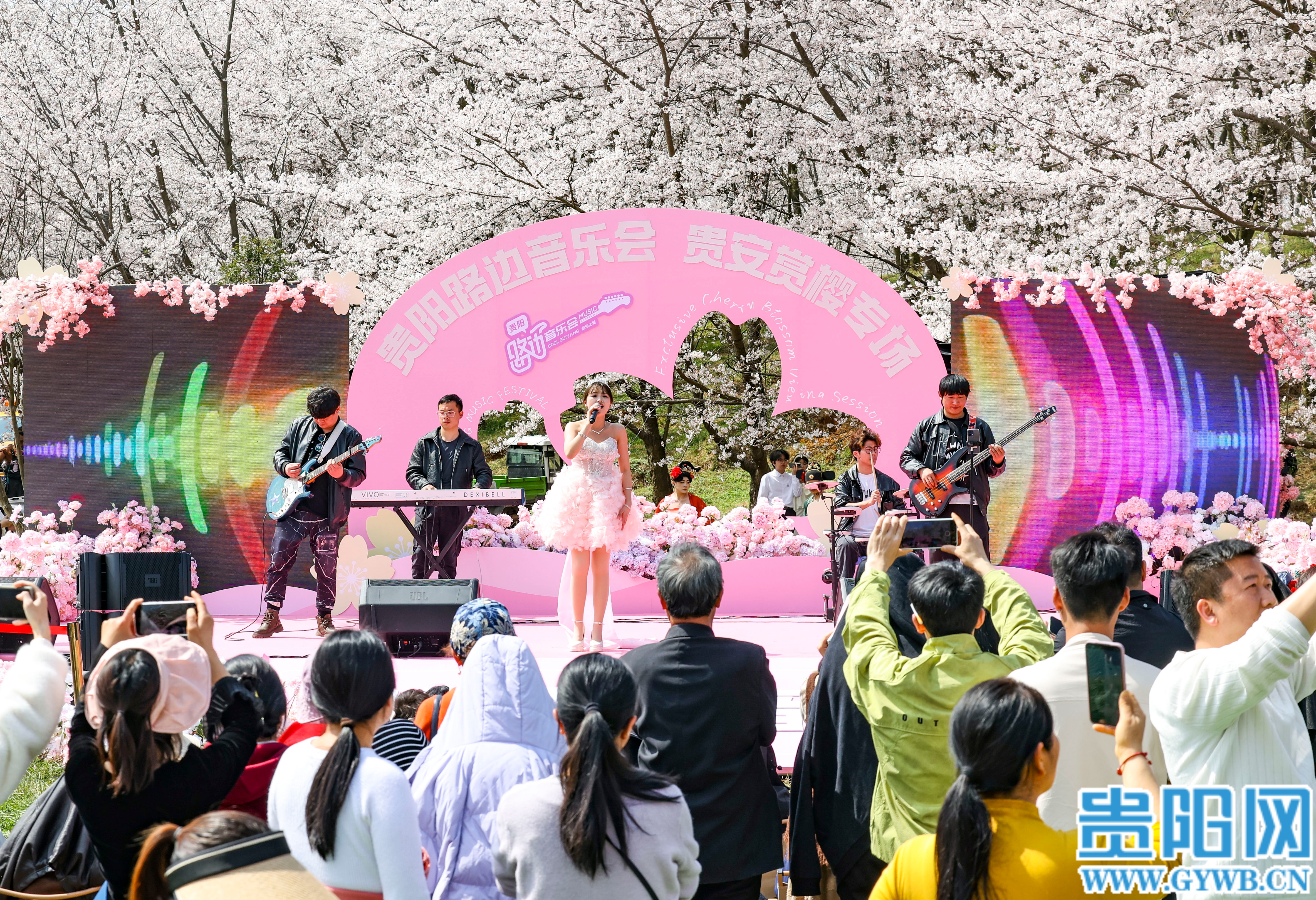 今年,作为贵州响亮的文旅IP,贵阳路边音乐会·贵安赏樱专场也如约而至,成为樱花季最具吸引力的视听亮点。舞台依花而建,与漫天樱花相映成趣,流行金曲点燃现场热情,观众们跟着节奏挥手合唱;国风民乐婉转悠扬,古筝、二胡与樱花花海相融,奏响东方雅致旋律;民族歌谣原汁原味,苗族飞歌、侗族大歌轮番上演,不同风格的音乐同台演绎,实现了传统与现代、民族与流行的完美融合。