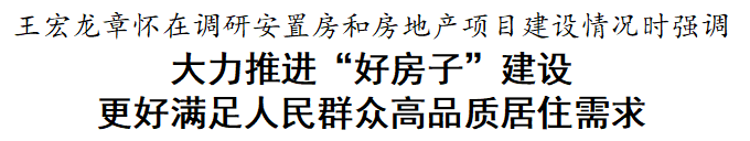 调研中,王宏、龙章怀强调,房地产业是国民经济重要支柱产业,与人民群众切身利益息息相关。要加快构建房地产发展新模式,控增量、去库存、优供给,大力推进安全、舒适、绿色、智慧的“好房子”建设。要精准对接企业需求,强化服务保障,为企业发展和项目建设营造良好环境。要严格施工管理,做到文明施工、安全施工。