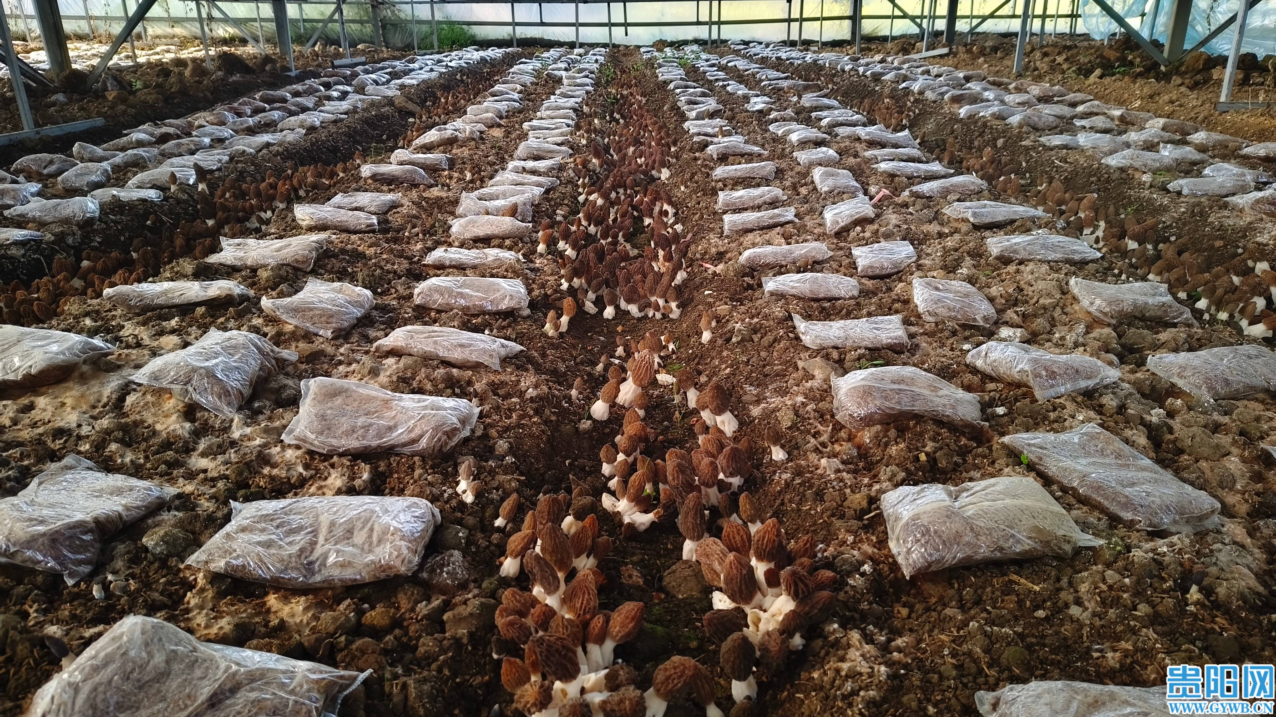 乌当区新堡布依族乡大寨村健豪种植场羊肚菌大棚内,羊肚菌长势良好。