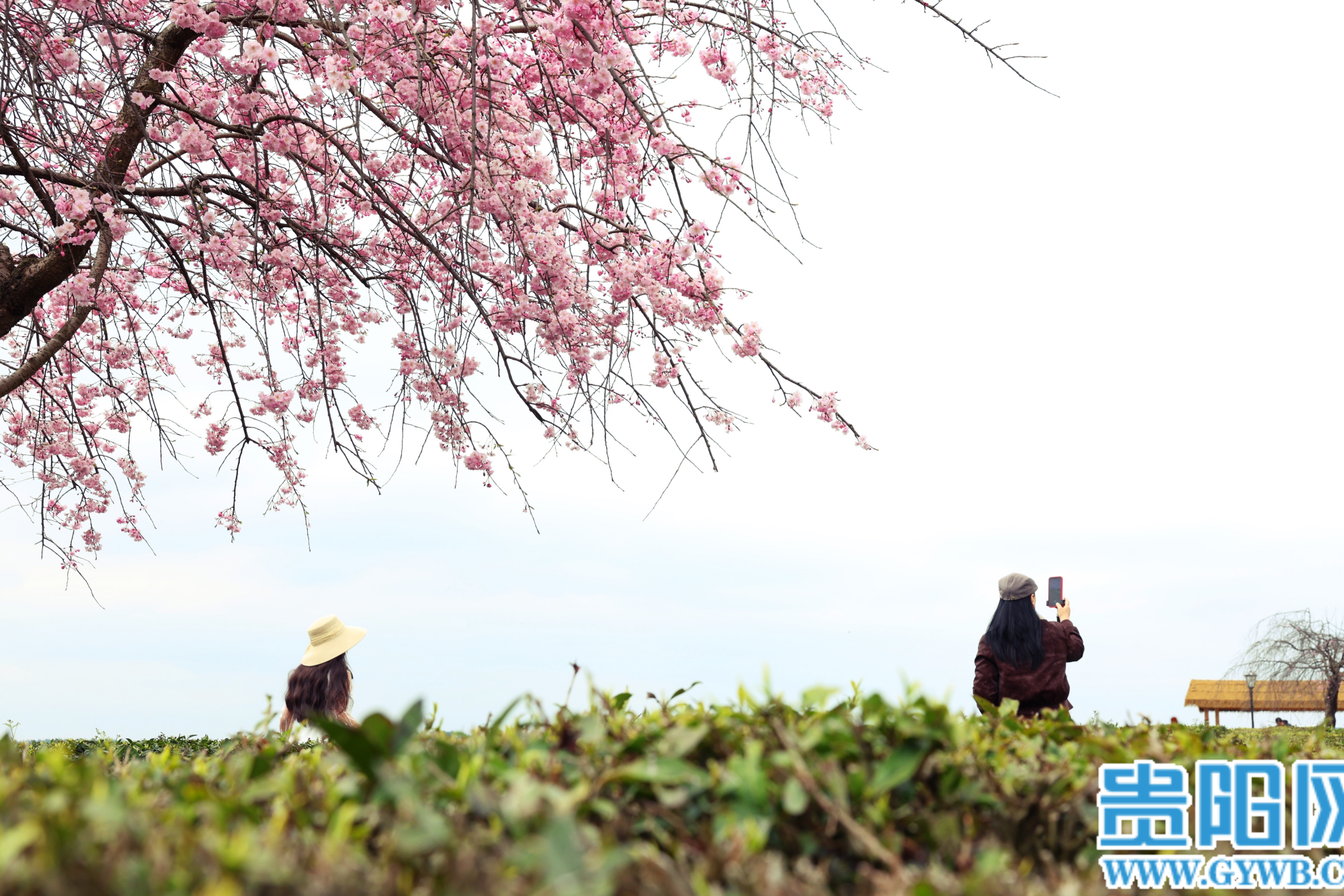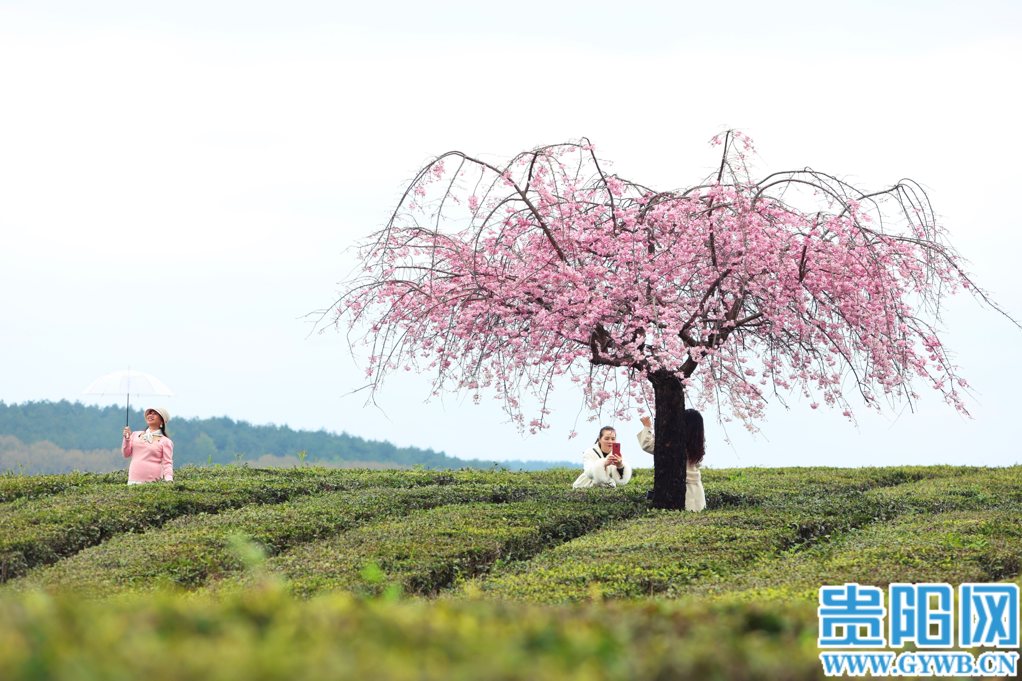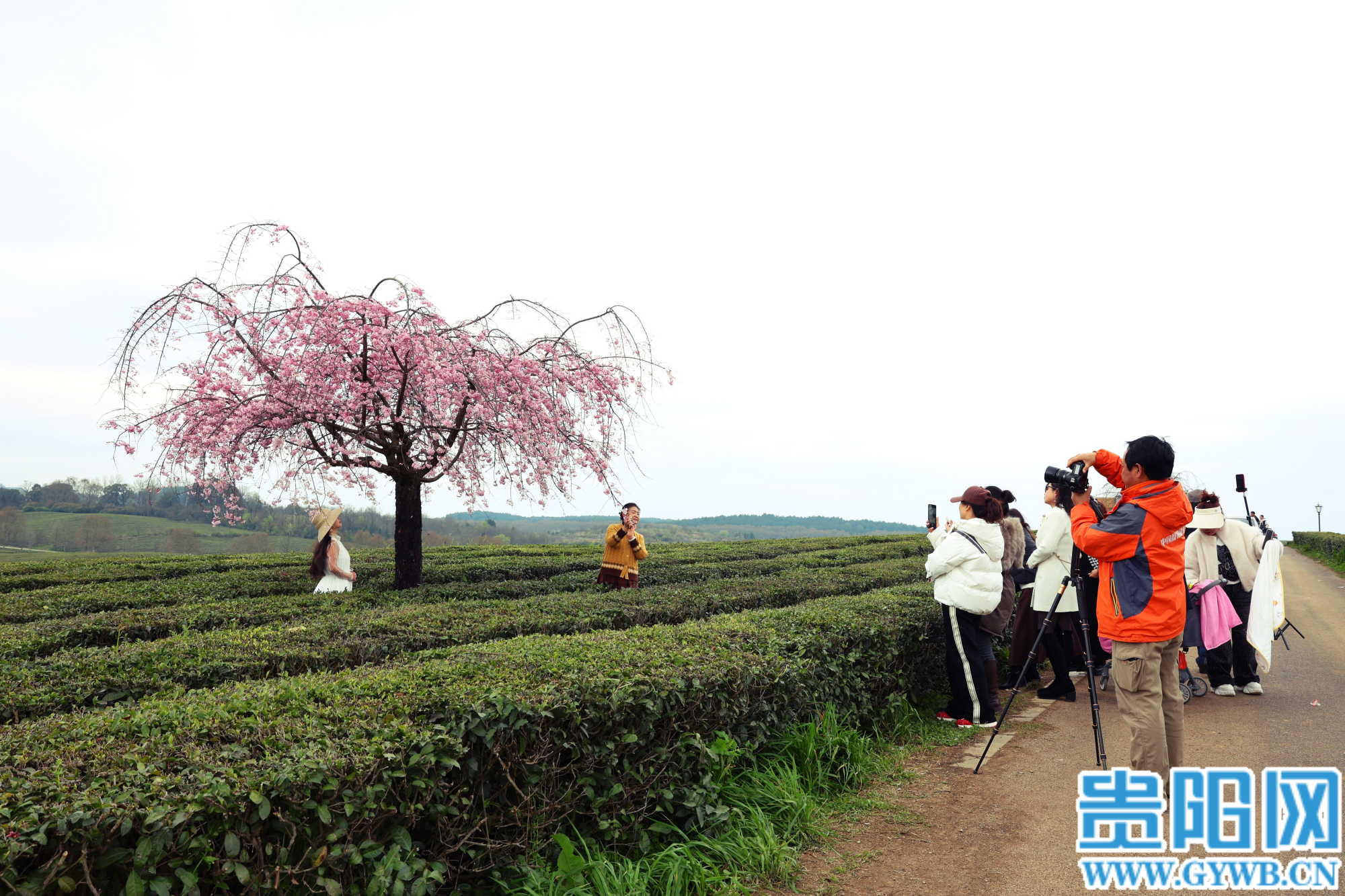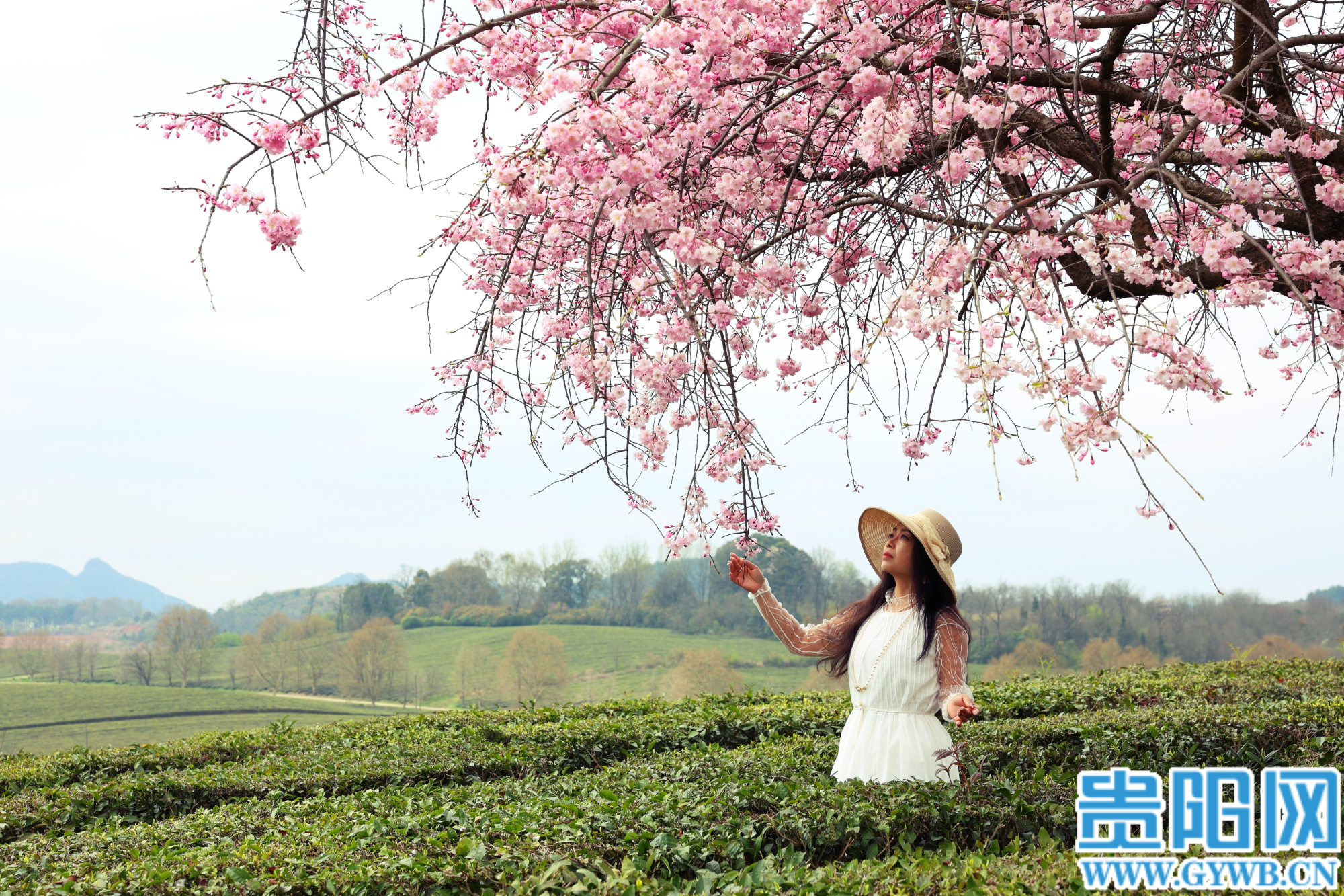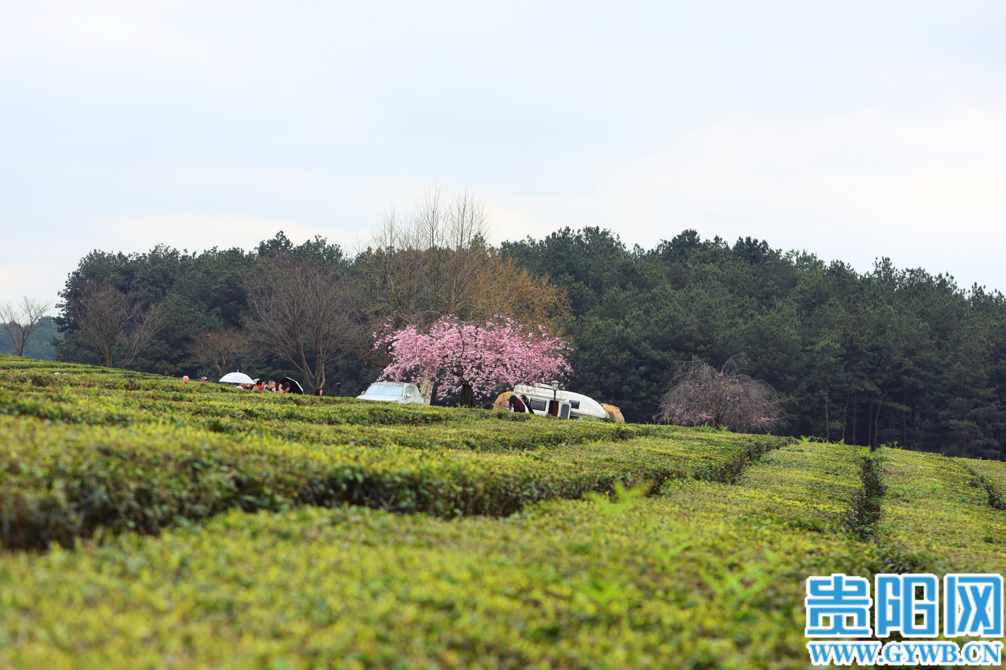 【花Young贵阳】羊艾茶场樱花已绽放,粉樱翠茶同框超出片