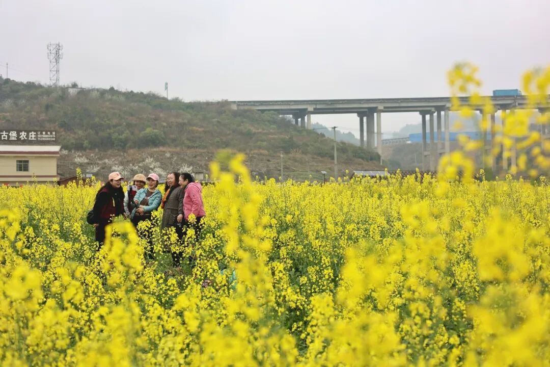 与金黄的油菜花田相映成画