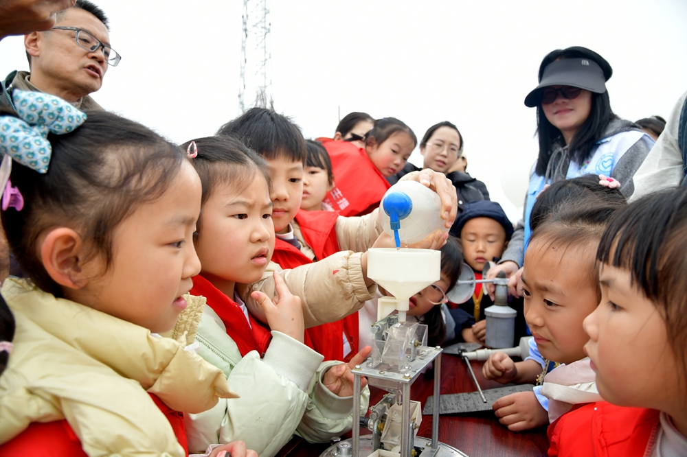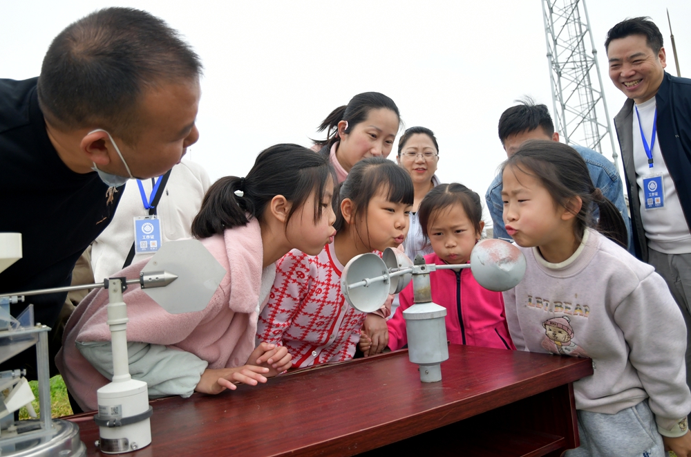 3月22日,为迎接世界气象日,贵州省贵阳市气象局诚邀广大市民到气象公园“吃”科普盛宴。与往年不同的是,今年参观的市民不再“走马观花”,在家长的陪同下小朋友们更倾向气象知识的掌握和灾害天气预警信息的运用。