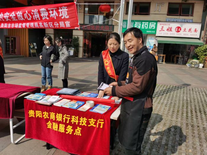为深入贯彻落实金融服务为民理念,切实提升社区居民金融消费安全意识和自我保护能力,紧扣“3·15”消费者权益保护核心主题,日前,贵阳农商银行科技支行联合观山湖区金融办、贵阳市市场监督管理局走进双创社区,开展金融消保主题宣传活动。