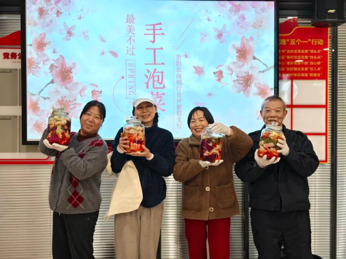 近日,贵阳农商银行首开紫郡支行以“最美不过手工泡菜”为主题,精心开展特色金融宣教活动。周边社区储户及居民踊跃参加,活动有效深化银社情感,生动彰显金融为民、服务暖心的责任担当。