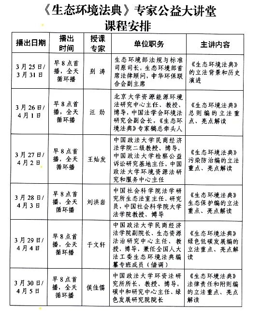 为深入学习宣传《中华人民共和国生态环境法典》,推动生态环境法治理念入脑入心、落地见效,贵州省生态环境厅定于2026年3月25日至3月30日,举办“生态环境法典专家公益大讲堂”线上学法活动。