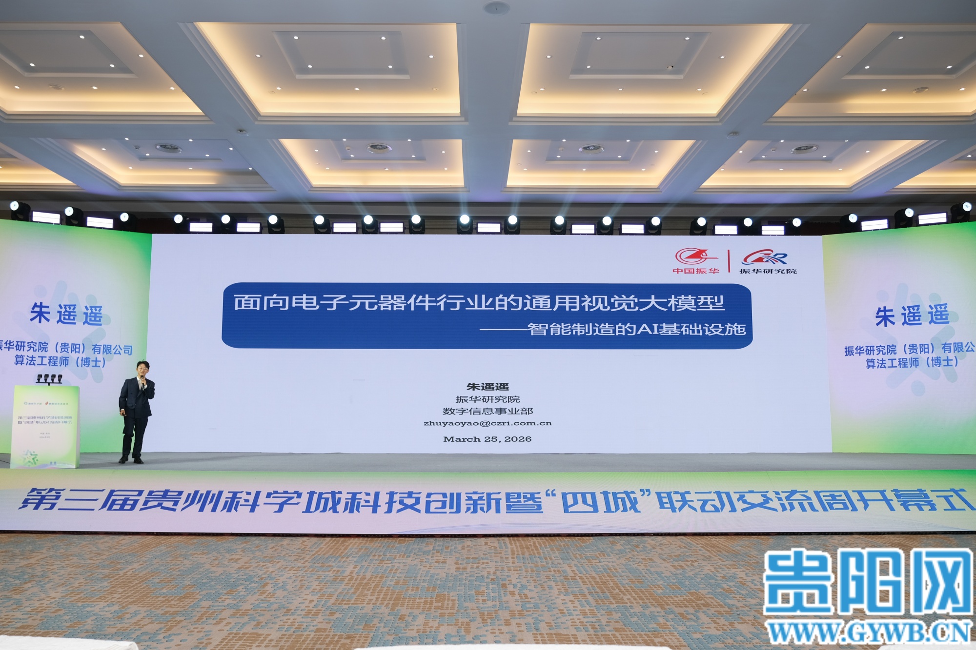 贵阳网·贵阳新闻讯 3月25日,第三届贵州科学城科技创新暨“四城”联动交流周开幕。活动现场,振华研究院(贵阳)有限公司算法工程师朱遥遥发布了面向电子元器件行业的通用视觉大模型。该模型也是我省电子元器件领域的首个视觉大模型,凭借AI的强大力量,为制造设备的智能化升级注入新动能。