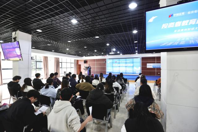 游戏环节结束后,华创证券投教基地的讲师以"构建财富创造力,开启投资之路"为主题,为在场学生带来了一场内容丰富、深入浅出的知识宣讲。讲师指出,真正的投资并非急功近利的买房炒股票,也不等同于将全部资产配置为保险产品,而是一个深刻认知自我、理解投资逻辑的过程。