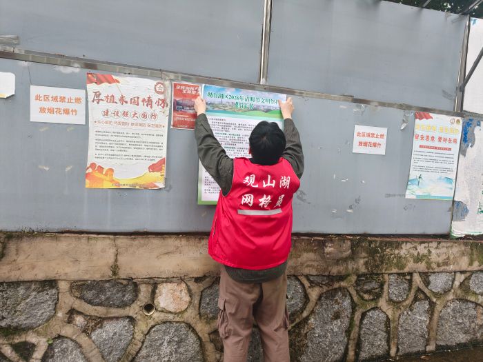 在开展隐患排查的同时,社区同步推进文明祭扫宣传工作。网格员深入金阳安置房居民楼,张贴《清明节文明祭扫倡议书》,向过往居民发放宣传资料,现场讲解森林防火法律法规、安全用火注意事项及火灾自救互救知识。针对清明祭扫传统习俗,工作人员积极倡导文明祭祀、绿色祭祀理念,引导居民摒弃焚烧纸钱、燃放鞭炮等传统祭扫方式,改用鲜花、水果等环保方式缅怀先人,从源头杜绝火灾隐患,营造文明祭扫的良好氛围。