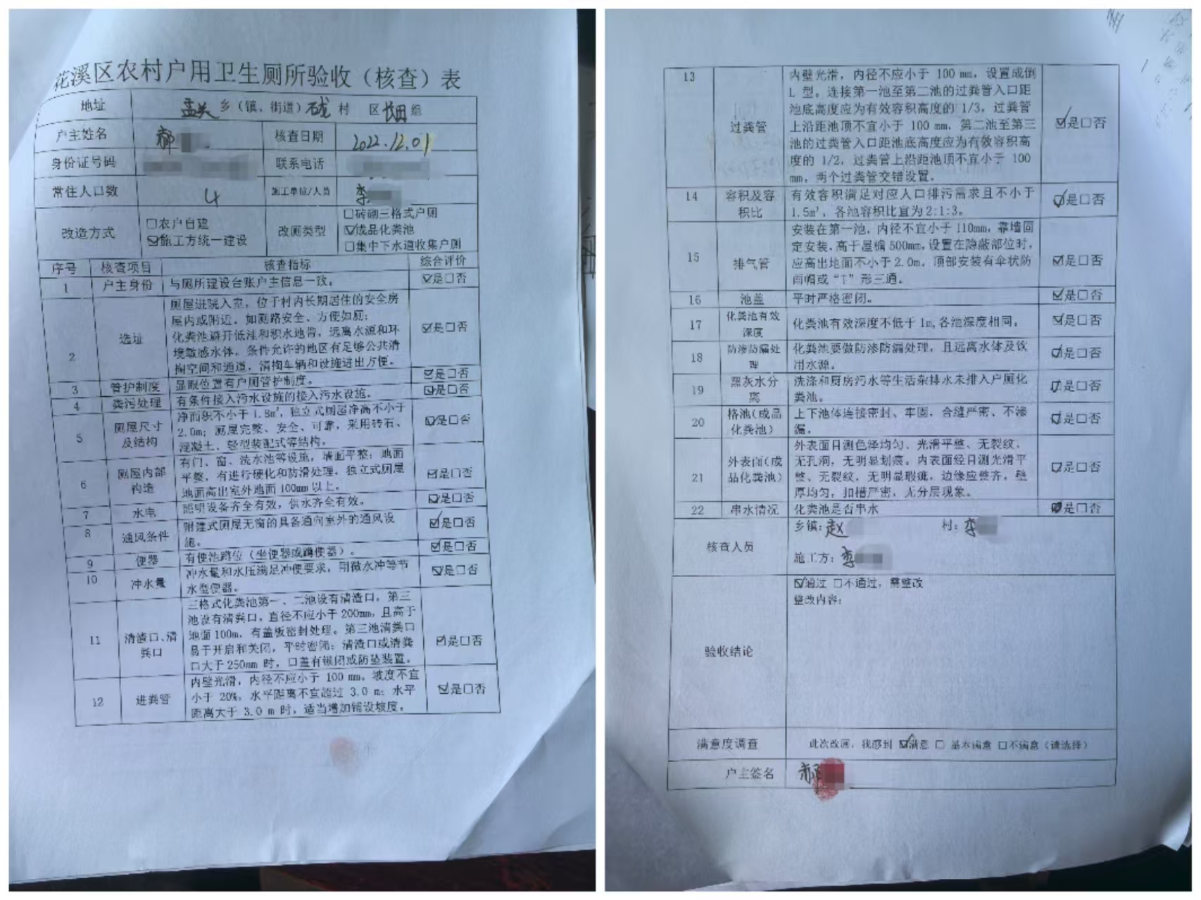 《花溪区农村户用卫生厕所验收(核查)表》