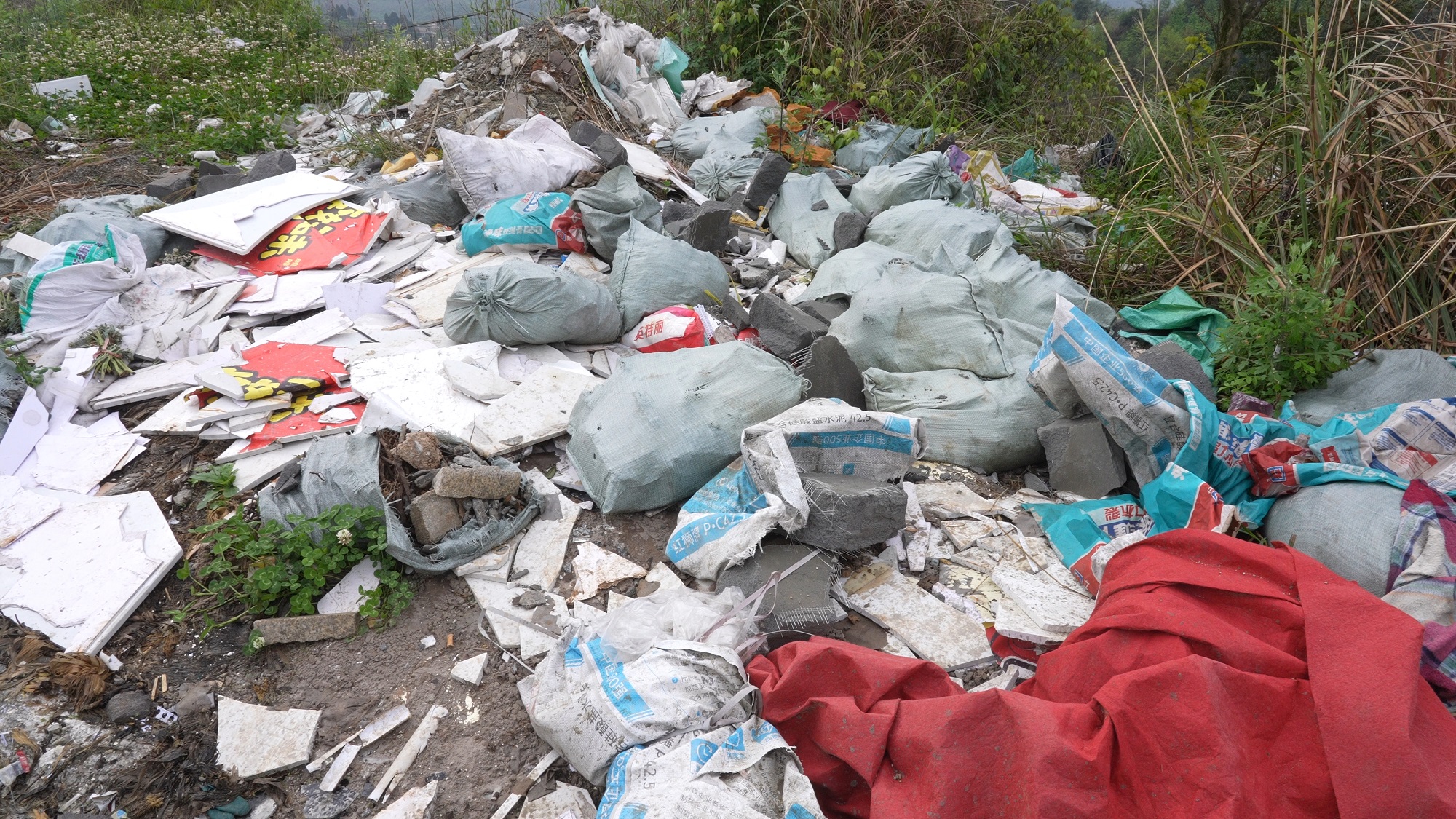 4月1日上午,工作组在阿栗村通往阿者组的路口看到,该道路依山而建,一侧紧邻龙水路,另一侧则是一处几十米高的山崖。道路两侧原本安装的绿色网状护栏,有的歪曲弯折,有的倒伏在地,还有部分护栏已“不翼而飞”。道路沿线不时可见散落的生活垃圾,其中一处还堆放着大量建筑垃圾,与周边环境格格不入。
