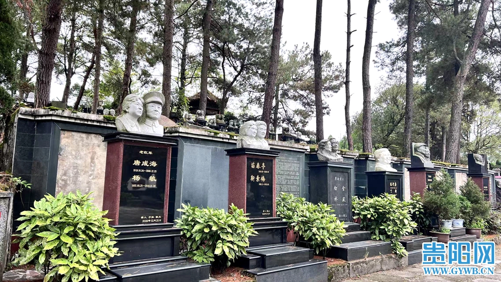 园内的贵州革命英烈纪念碑前,王若飞、邓恩铭、周逸群的站立像栩栩如生。这里还安息着数千名南下干部,他们从冀鲁豫远道而来,把一生献给贵州。林业、广播、国防科技、体育……他们成为了贵州各领域发展的奠基者。如今,他们默默凝视着曾为之拼搏一生的地方,看着贵州一步步成长、壮大。
