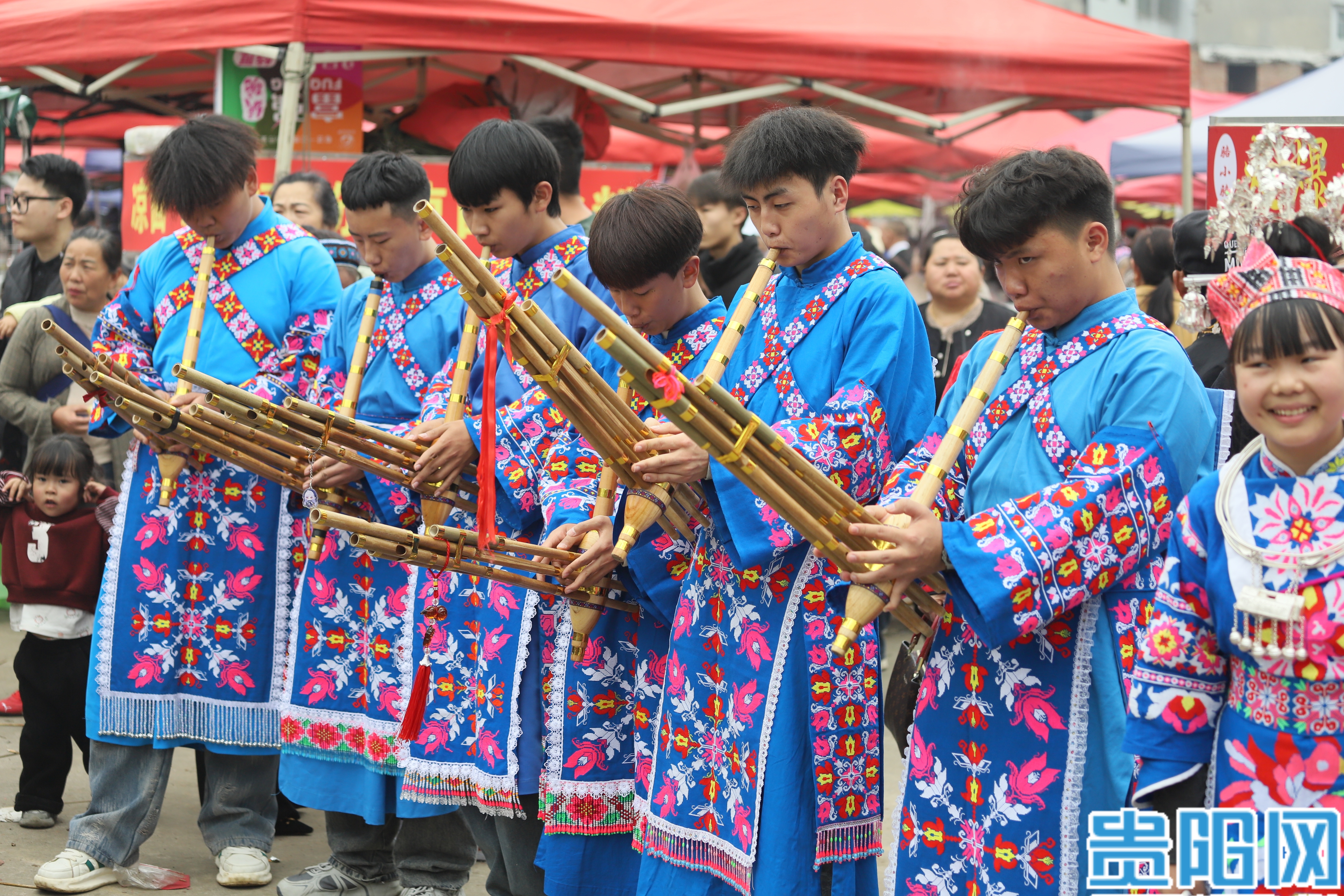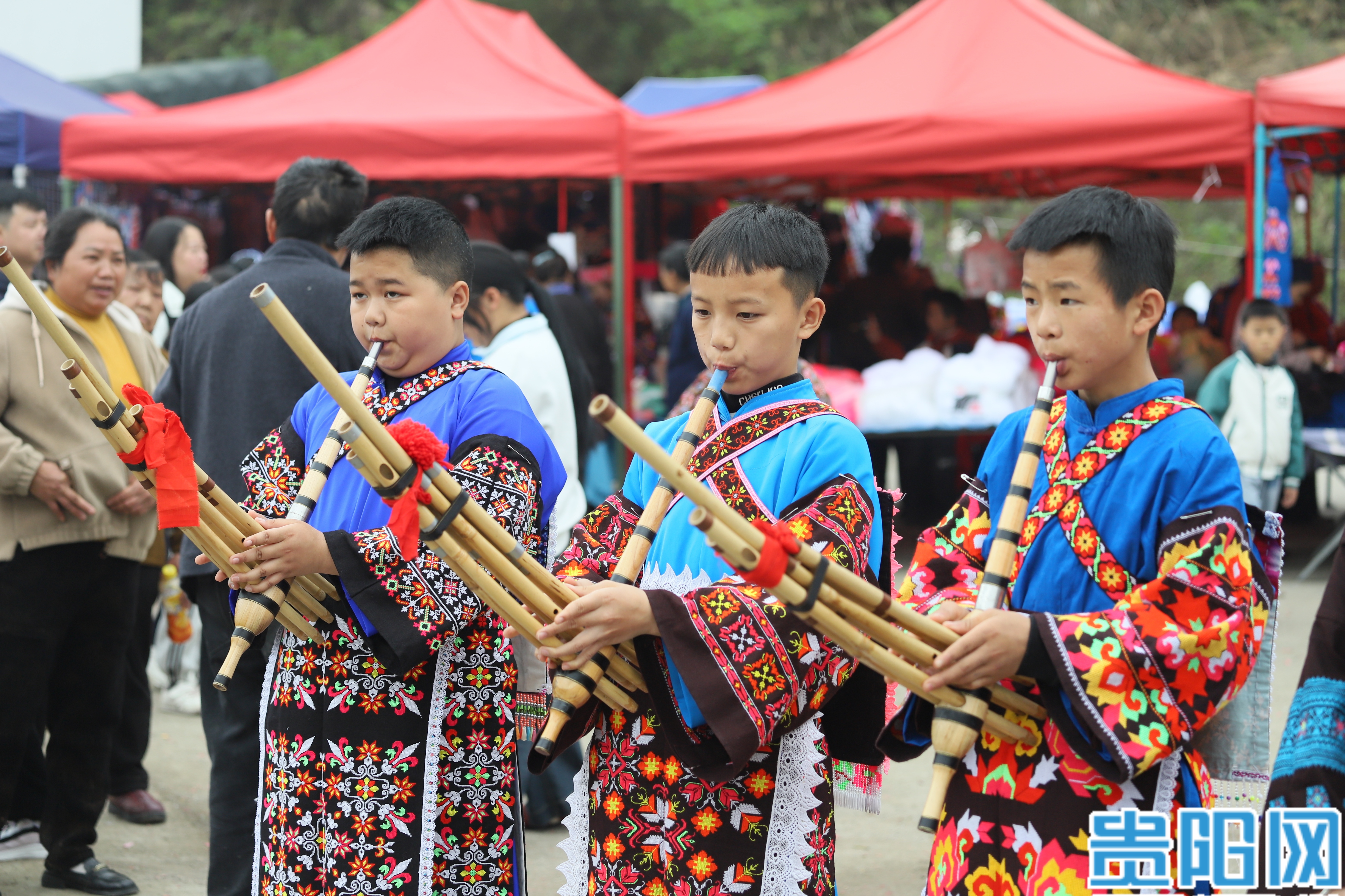 吹奏芦笙的苗族男孩