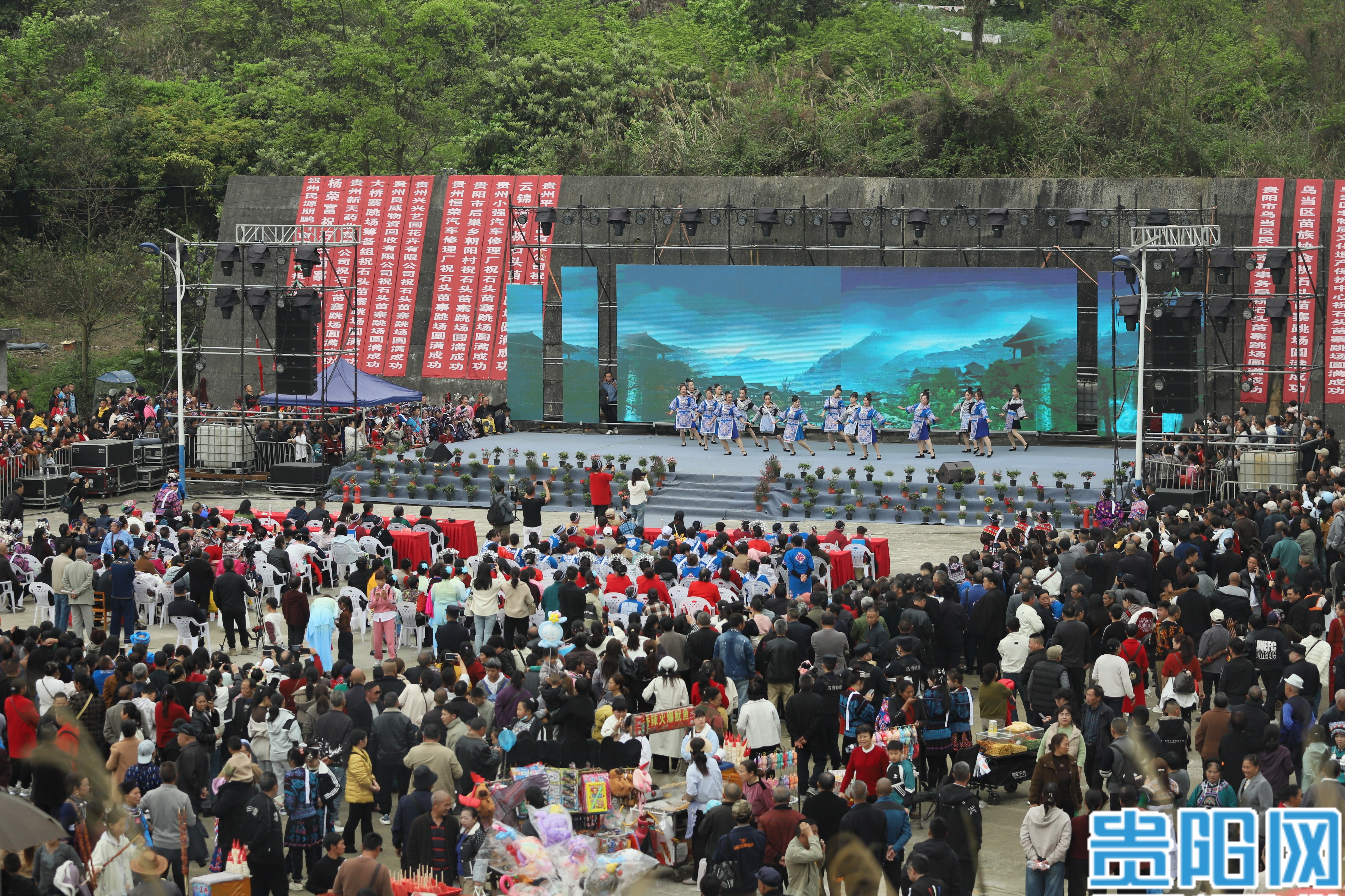 贵阳网·贵阳新闻讯 4月1日至3日,乌当区东风镇云锦村石头寨举办苗族跳场活动。来自各区(市)县的各族群众万余人齐聚一堂,载歌载舞、共话情谊,一同庆祝这场一年一度的民族盛会。
