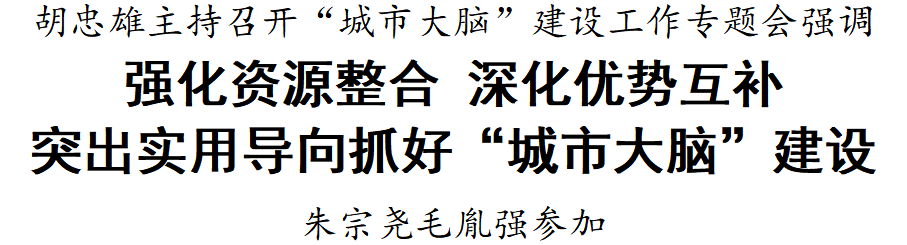 胡忠雄强调,要谋划好,坚持应用为王,聚焦数据库、驾驶舱、服务台,抓好顶层设计,推动想法、算法向解决问题的办法转化。要建设好,围绕一体化数智底座、公共数据畅通体系、四个“一网”治理应用体系和两个服务终端“1142”总体架构,积极在“城市大脑”建设上勇探索打头阵走前列。要管理好,紧盯“城市大脑”行政管理、技术运用,抓好日常管理、应急管理、重大事件活动管理,更加主动顺应数智时代城市治理需要。要使用好,紧扣党委政府、企业、市民游客使用需求,不断丰富拓展应用场景,更好引领推动全域数字化转型。