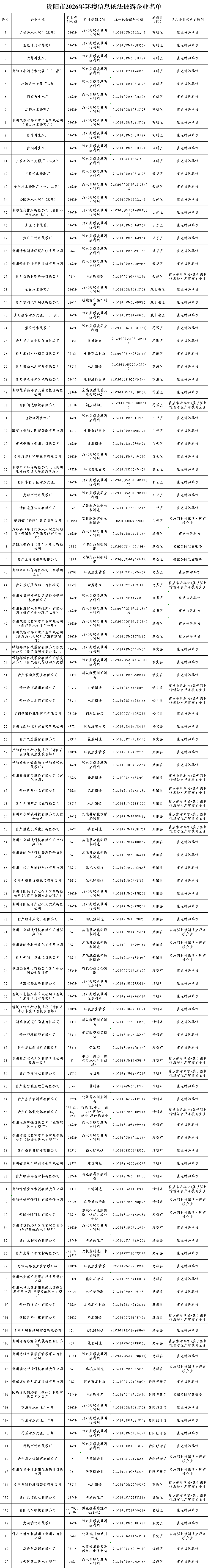 根据《企业环境信息依法披露管理办法》,贵阳市生态环境局于近日正式向社会公布2026年环境信息依法披露企业名单。