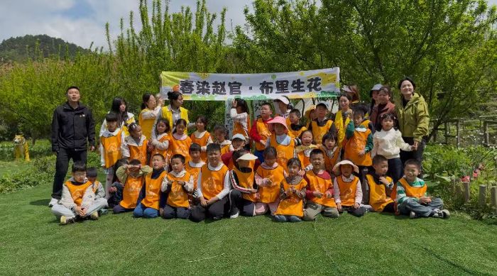 走进赵官村的春日研学现场,孩子们化身“小小探索家”,跟着老师徒步乡野,触摸青草嫩芽、辨认农耕作物,沉浸式体验“五感自然”;非遗扎染课堂上,大家亲手调配染料、折叠布料,看着白布在浸染中开出独一无二的花纹,惊叹声此起彼伏;农耕采摘环节,孩子们亲手摘下新鲜蔬果,真切体会“粒粒皆辛苦”,珍惜粮食的意识在实践中悄然扎根。