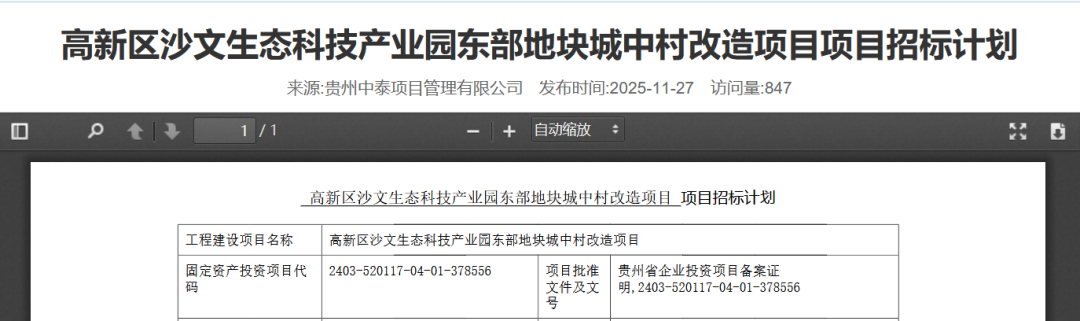 据此前项目招标公告显示,高新区沙文生态科技产业园东部地块城中村改造项目,项目改造面积879.87亩,拆迁改造建筑面积约34.8万平方米。新建安置房总占地约141.13亩,总建筑面积约45.32万平方米。建设住宅25栋(建筑面积约30.09万平方米,总居住户数约为2628户),公共服务配套设施面积约1.51万平方米(含生活服务、幼儿园等配套设施),停车位3206个(预留100%充电基础设施安装条件且配建不低于10%比例的充电基础设施)。
