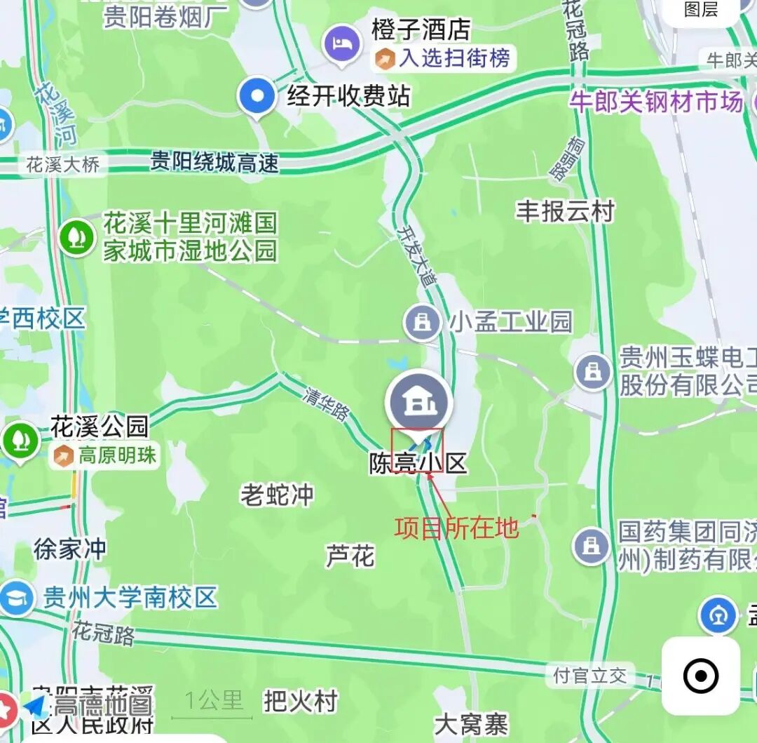 据公告显示,项目建设地点位于贵阳市花溪区田园路与明珠大道交叉口东北部。项目用地东接清溪路,西抵田园路,南靠榕筑南溪绿园和阳光花园,北邻贵大南苑和兰馨桂馥花园。总建筑面积约40.42万平方米的商住项目(最终以规划审批建筑面积为准),包含住宅、商业等业态,配套建设幼儿园及小学。