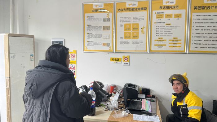街道工作人员走进辖区外卖站点,鼓励外卖骑手通过“随手拍”参与食品安全监管