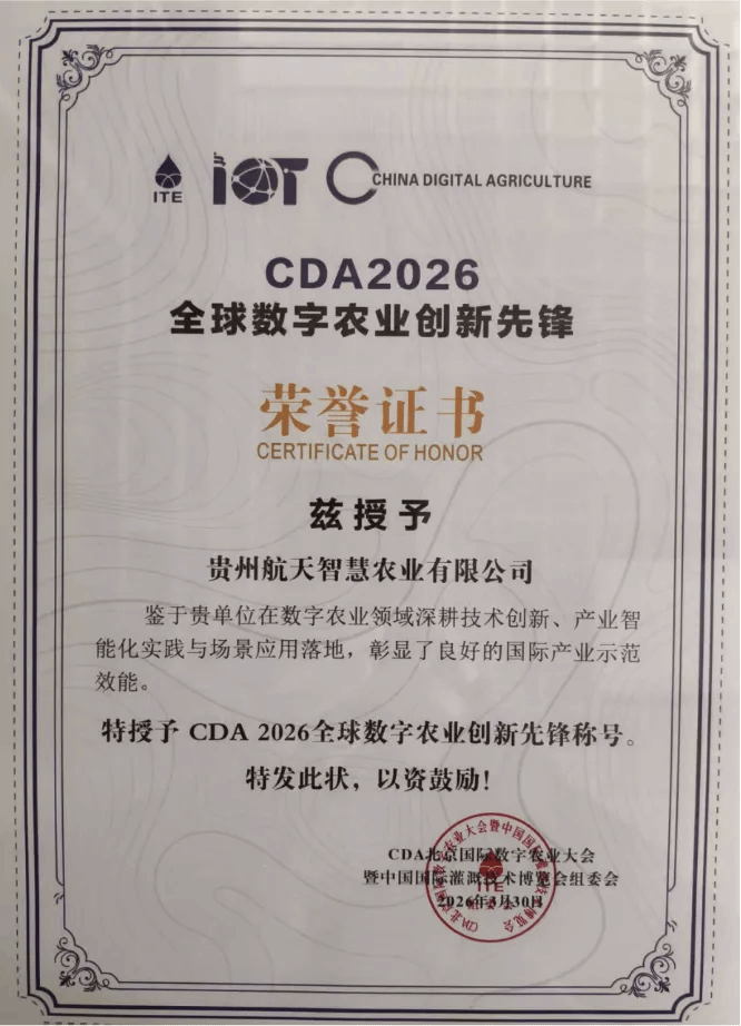 自2016年成立以来,航天慧农始终以科技创新为核心驱动力,构建起涵盖智能灌溉、智慧温室、数字三农、智能农机、数智植保等核心领域的产品与服务体系,先后斩获国家级创新成果奖、省级科学技术进步奖等多项荣誉,入选2024年数字农业场景应用品牌企业、2026年全球数字农业创新先锋名单。其创新成果不仅在贵州本地广泛应用,更辐射浙江、甘肃、宁夏等全国多个省份,为农业产业数字化转型升级提供坚实支撑 。