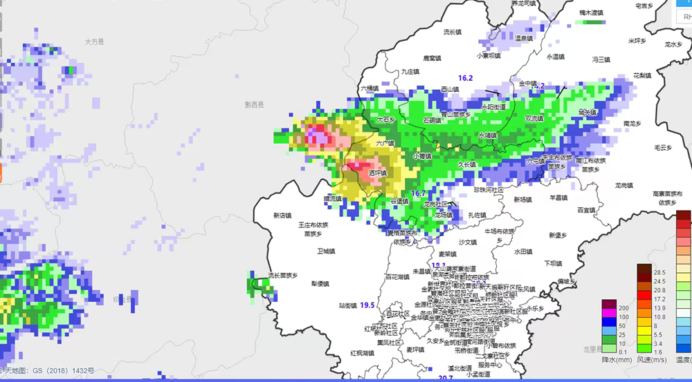 4月15日20时,位于清镇市东北部与黔西市东南部的冰雹云团正往修文、息烽、开阳方向移动。目前修文县、开阳县、息烽县气象台已发布冰雹橙色预警信号。