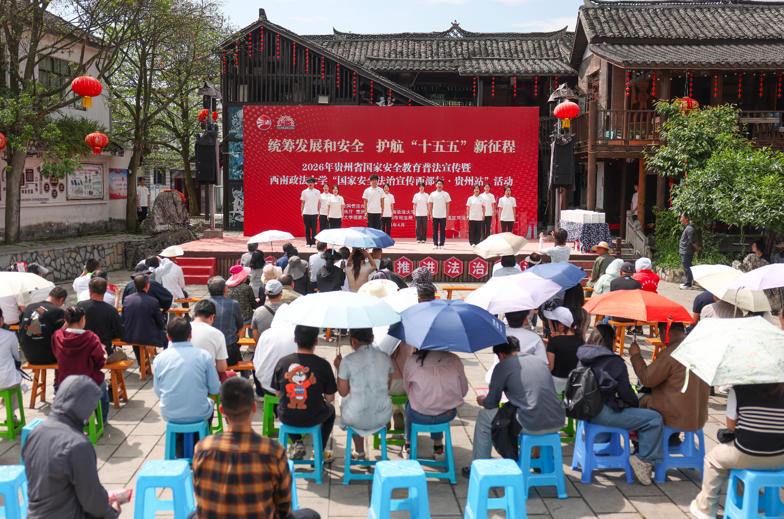 “国家安全法治宣传西部行·贵州站”活动在贵阳举行。贵阳市司法局、花溪区司法局积极配合协办,在花溪区龙井村、贵州民族大学等地,以讲、聊、演、诵、唱以及知识竞答等方式,用通俗易懂、贴近群众的语言,向村民讲解与日常生活密切相关的国家安全知识。情景朗诵《我们每个人都是长城》,互动式宣讲《把中国人的饭碗牢牢端在自己手中》,情景宣讲《只此青绿,生生不息》......青年学子们富有青春朝气与饱满热情的宣讲,让现场村民群众听得懂、记得住、有共鸣,推动总体国家安全观深入人心。