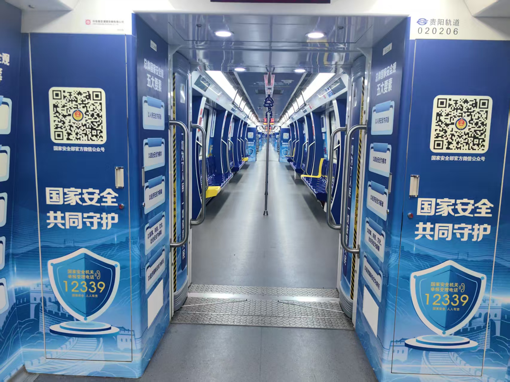 4月12日,贵阳贵安首个轨道交通国家安全教育阵地——贵阳轨道交通2号线兴筑路站“总体国家安全观主题站厅”焕新开放,同步上线的“国安号”主题轨道交通专列也启动运行。站厅内以图文、案例、数据等形式生动展示政治、经济、网络等20余个国家安全重点领域并设置扫码答题等环节,让国家安全宣传融入市民日常出行,宣教内容更接地气、更具实效。
