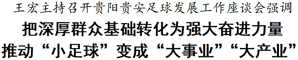 贵阳网·贵阳新闻讯 4月15日,市委副书记、市长王宏主持召开贵阳贵安足球发展工作座谈会。他强调,要深入学习贯彻习近平总书记关于体育和足球工作的重要指示批示精神,认真落实全国足球工作会议精神,把深厚群众基础转化为强大奋进力量,推动“小足球”变成“大事业”“大产业”。