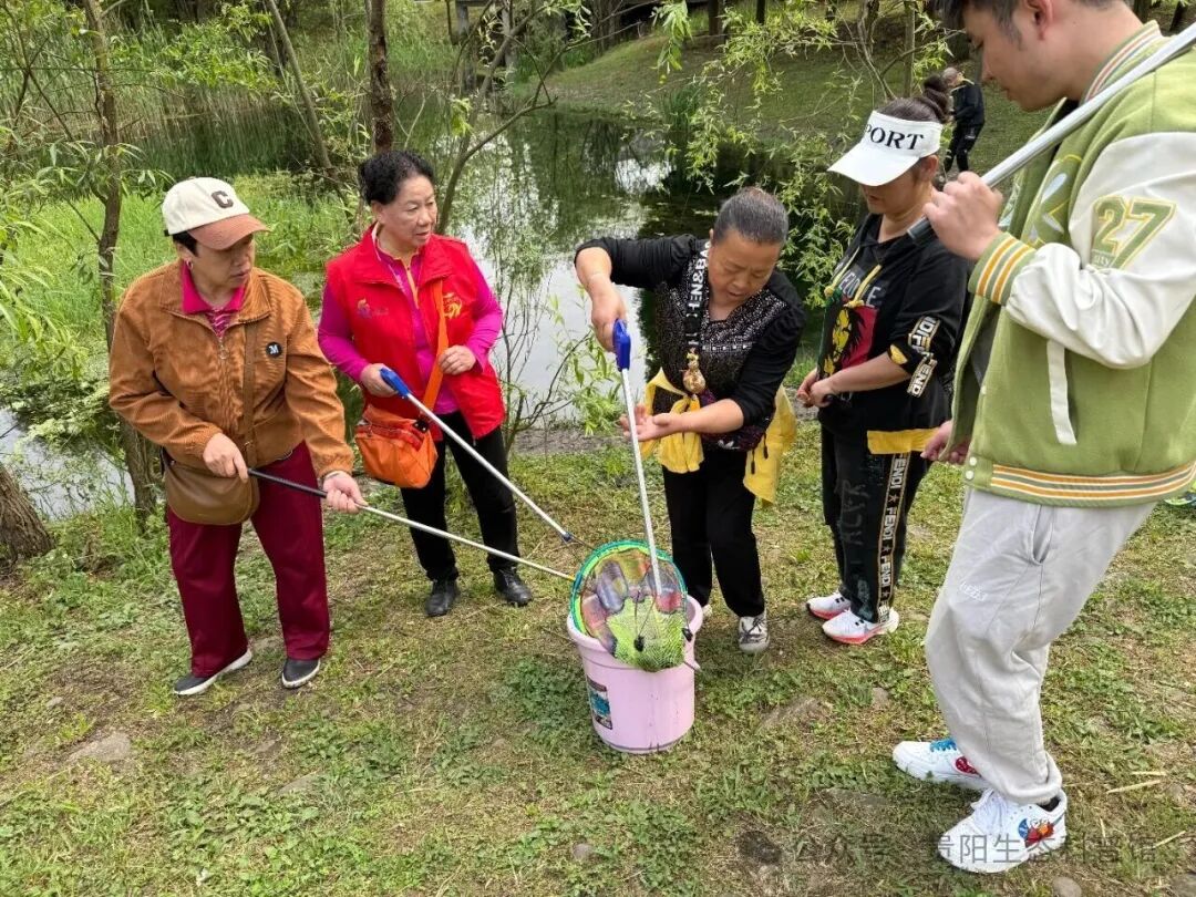 科普结束后,志愿者们走进十里河滩湿地公园,开展“捞螺护生态 志愿踏春行”清理行动。大家沿河岸仔细排查、集中打捞,将福寿螺及卵块进行清除,以实践行动筑牢生态安全防线。