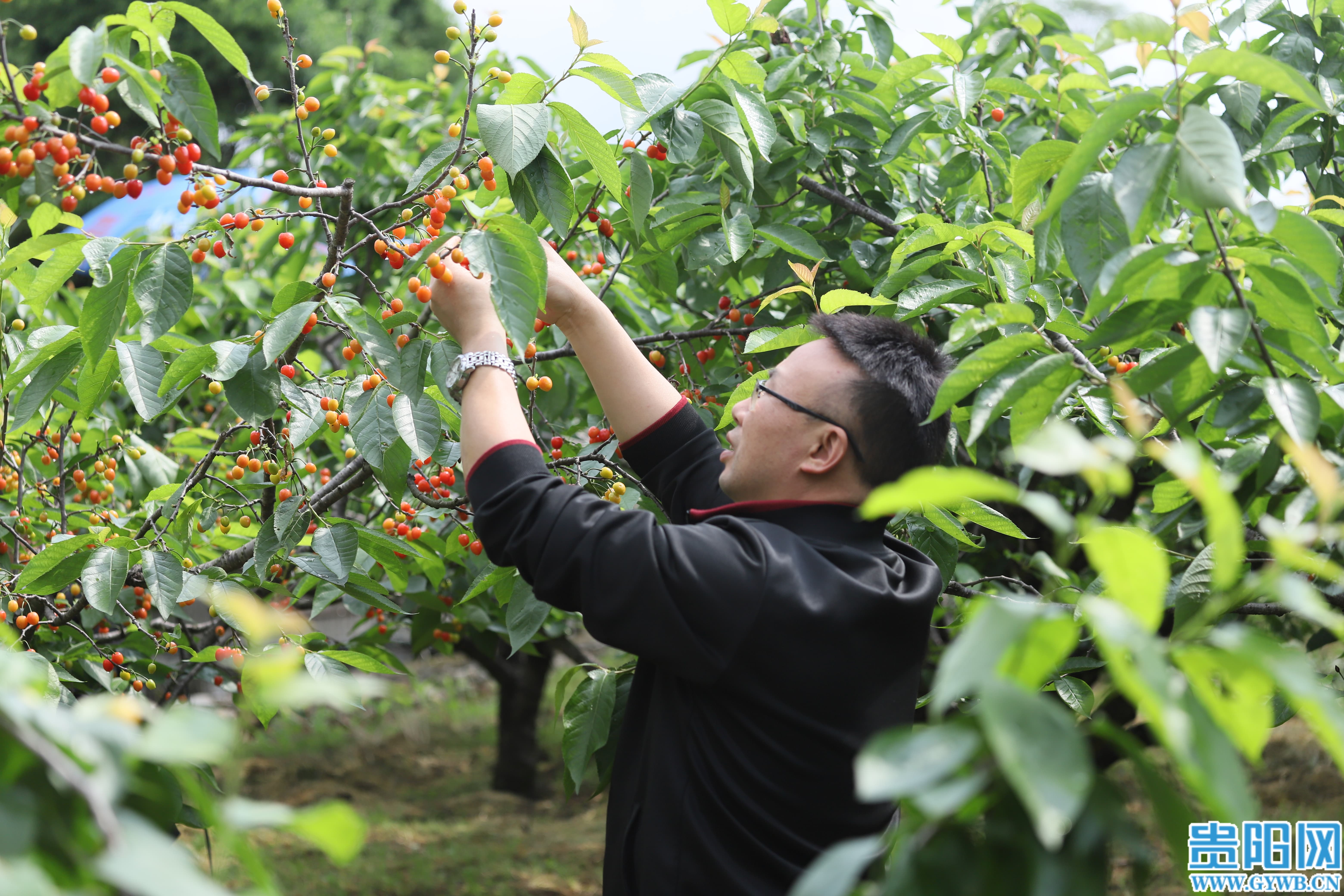 据了解,下坝镇是贵阳市远近闻名的“樱桃之乡”,今年樱桃种植面积达1190余公顷,分布在全镇8个村,以玛瑙红、黑珍珠两个品种为主。其中,谷坝村、谷定村种植面积最大,共计330余公顷。