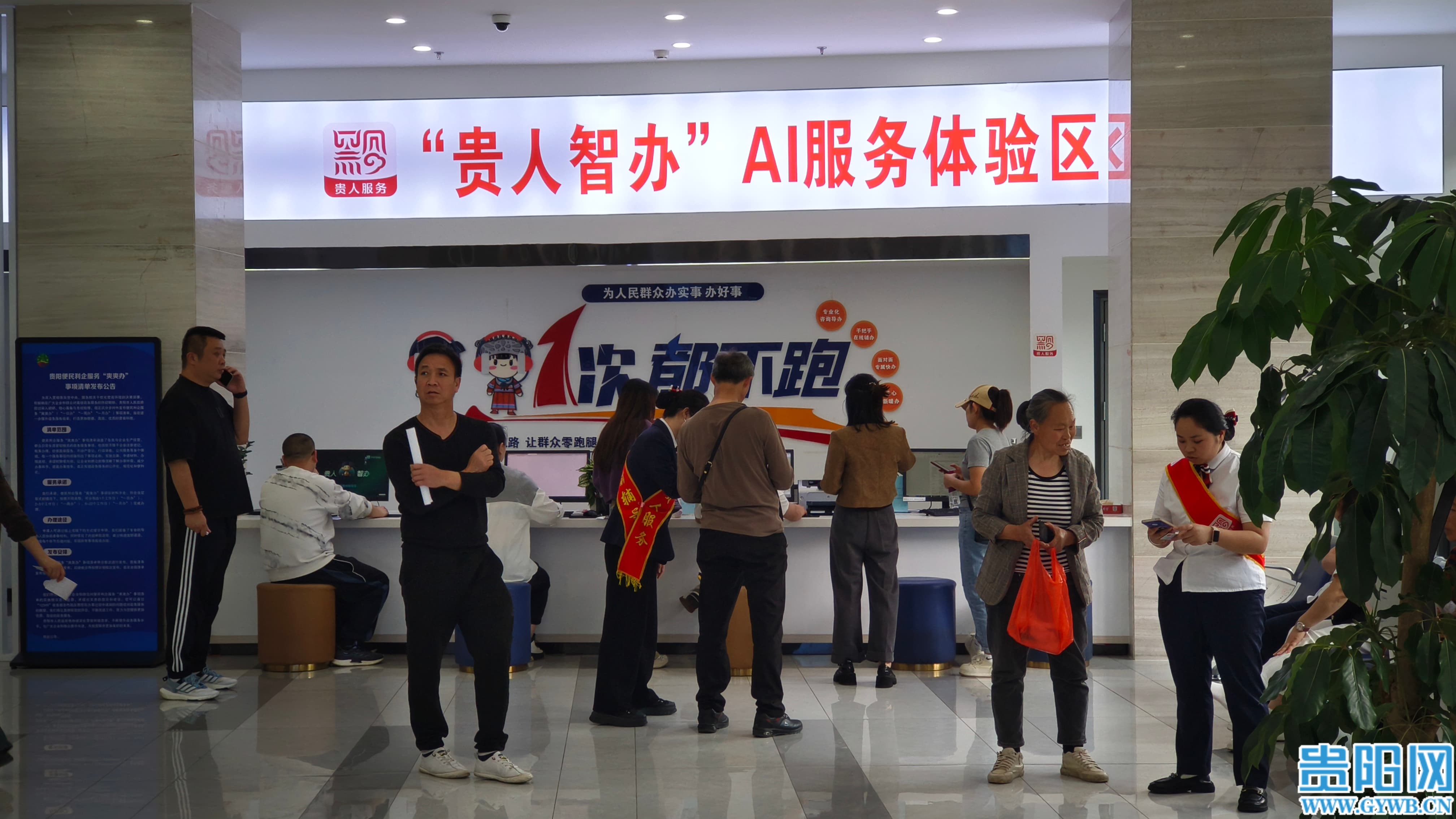 办事群众在工作人员引导下体验“贵人智办”AI助手办理业务。