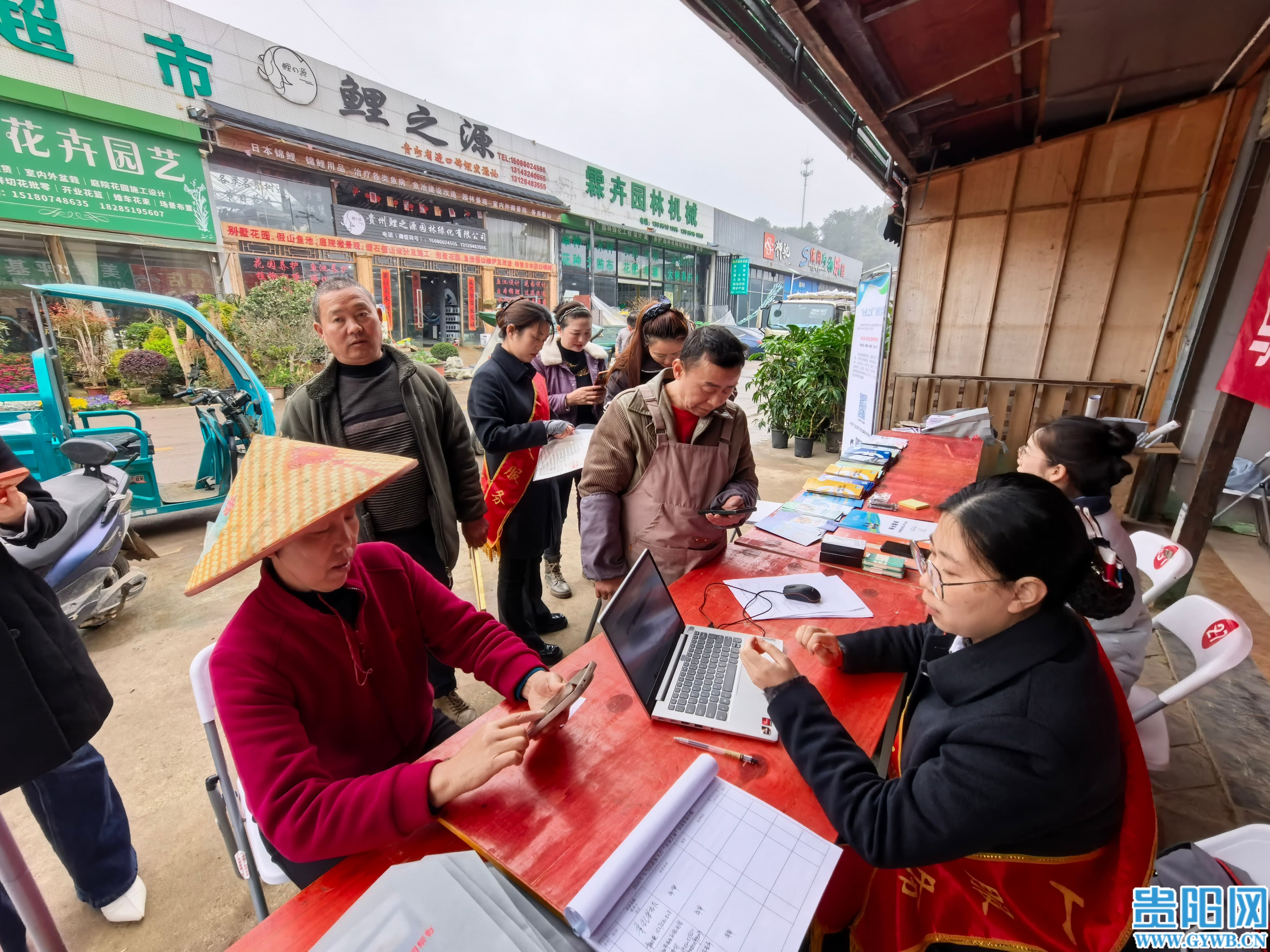 乌当区政务服务中心走进阿栗花卉市场开展“移动政务活力办”系列活动,为周边商户、居民办理业务。乌当区政务服务中心供图