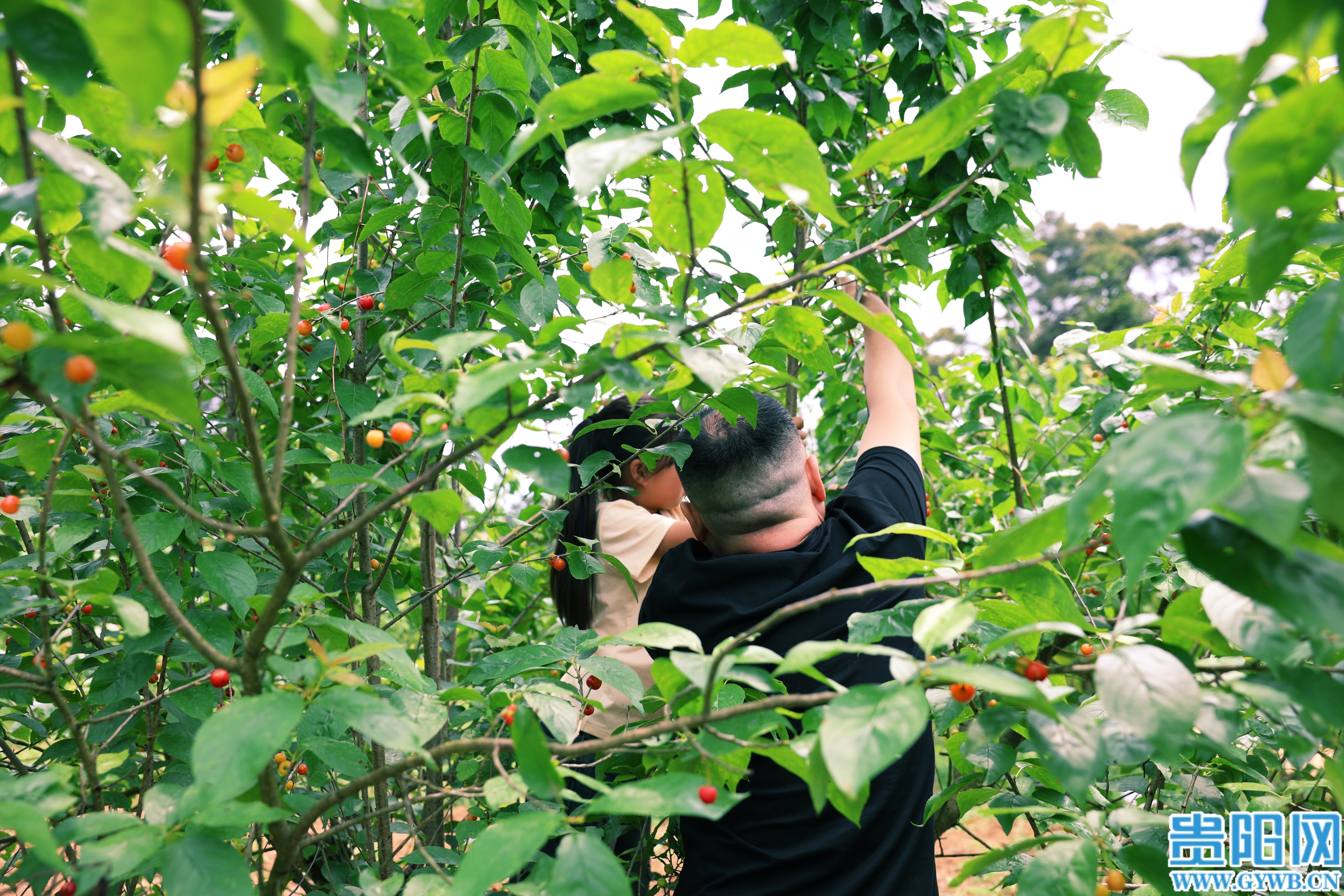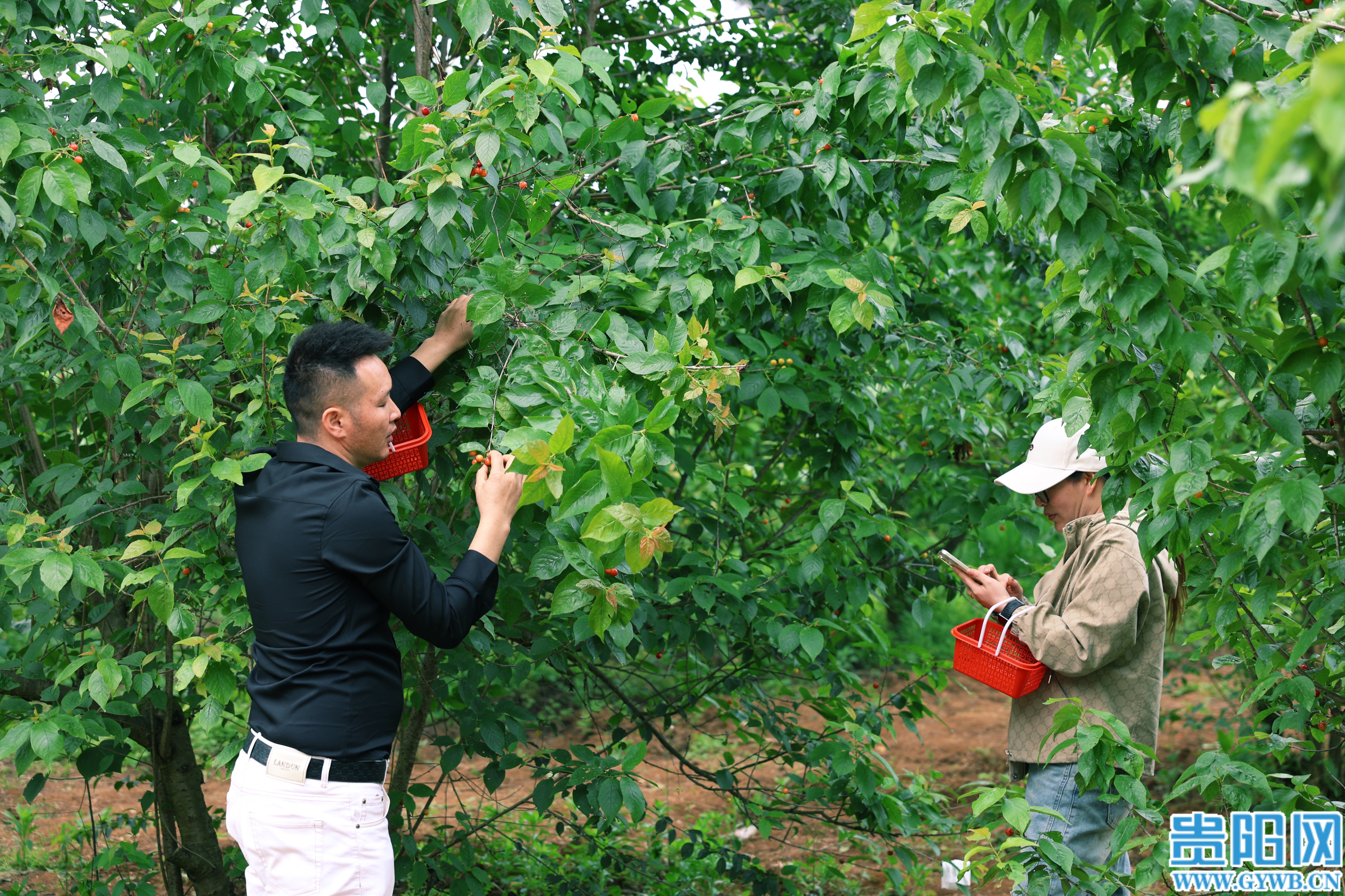 贵阳网·贵阳新闻讯 眼下正值四月樱桃成熟时节,贵安新区马场镇平阳村樱桃园内硕果盈枝,迎来最佳采摘期,吸引大批市民游客慕名前来踏青尝鲜。 枝头樱桃色泽红润、晶莹饱满,掩映在翠绿枝叶间,果香四溢。不少市民携亲友结伴入园,亲手采摘鲜果,沉浸式感受田园春光与采摘乐趣。