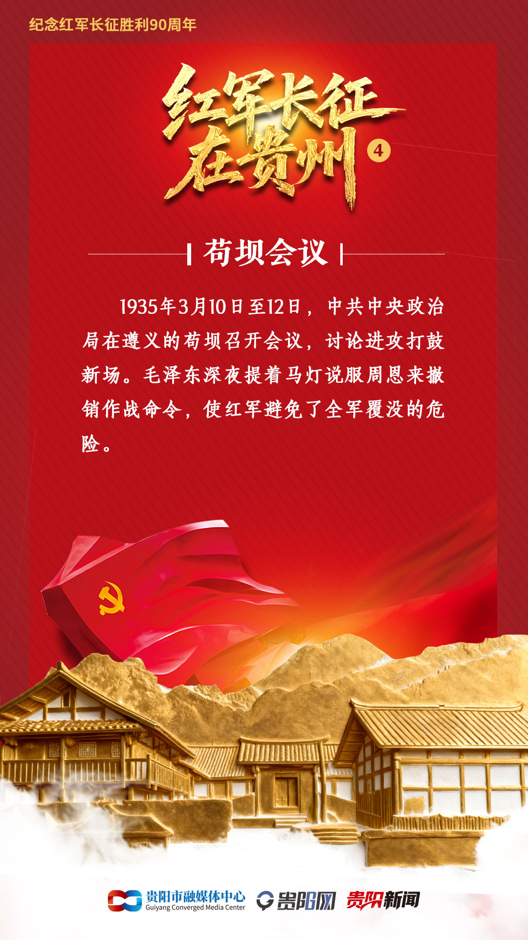 于是,3月10日至12日,中共中央政治局在遵义县枫香镇苟坝村召开扩大会议,讨论要不要进攻打鼓新场,这就是苟坝会议。
