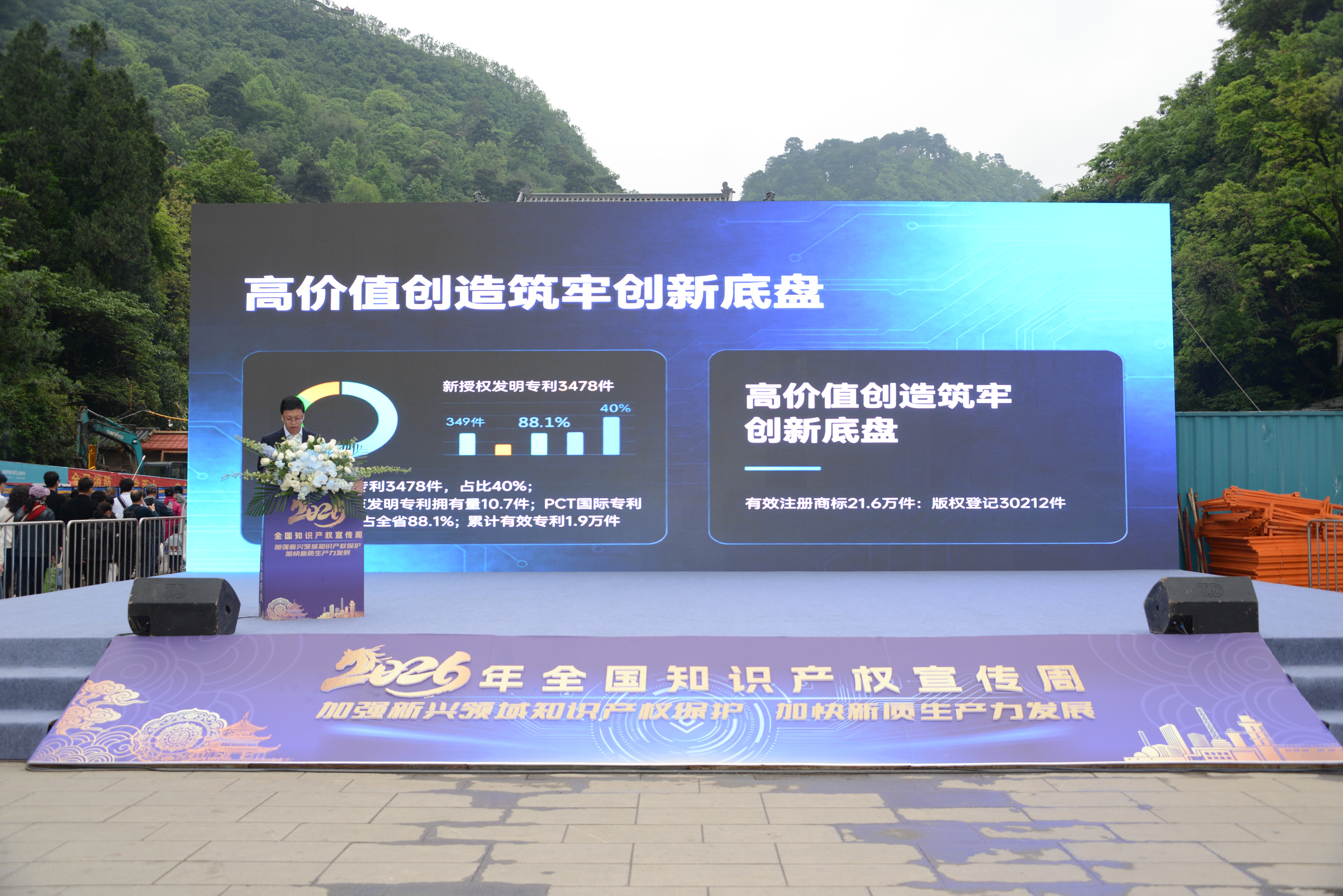 4月22日,在第26个“世界知识产权日”到来之际,2026年贵阳市·云岩区“知识产权宣传周”主题活动在黔灵山公园南门前广场举行。活动以“加强新兴领域知识产权保护 加快新质生产力发展”为主题,通过成果发布、非遗展演、特色市集等环节,集中展示贵阳贵安知识产权工作成效,营造“尊重知识、崇尚创新、诚信守法、公平竞争”的良好氛围。