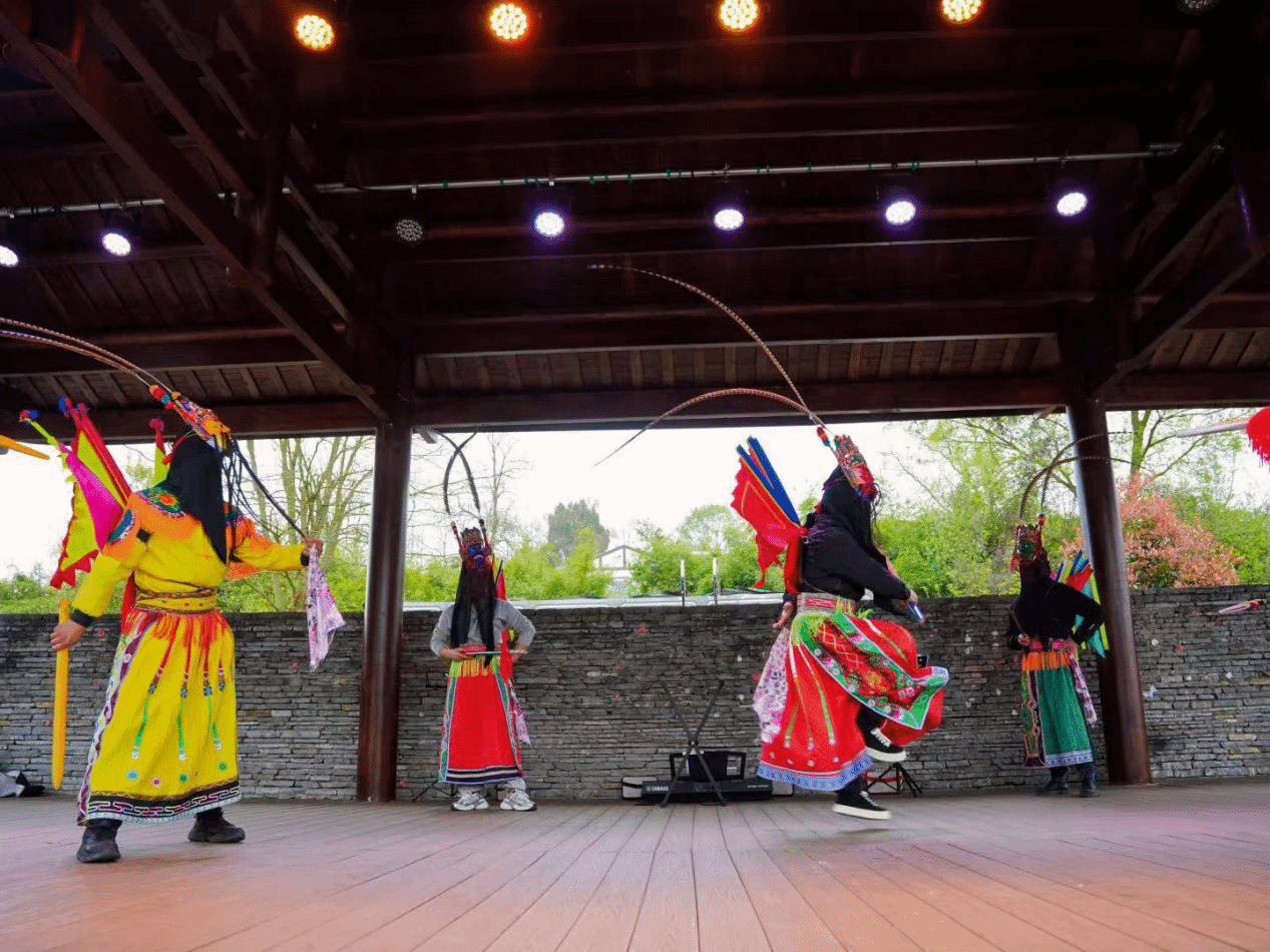 本次水上市集,这群年轻传承人将打破表演边界,创新推出水上地戏特色演出。演员们驾乘竹筏,穿梭于车田河碧波之上,临水而立、踏水开唱,将经典传统剧目搬至水上舞台。碧波为幕,山水为景,传统戏文与自然风光相融,既保留了地戏“跳神驱邪、颂扬英雄”的核心内涵,又带来前所未有的沉浸式体验,让游客在水岸漫步时,能直观感受非遗民俗的独特魅力与青年传承的力量。