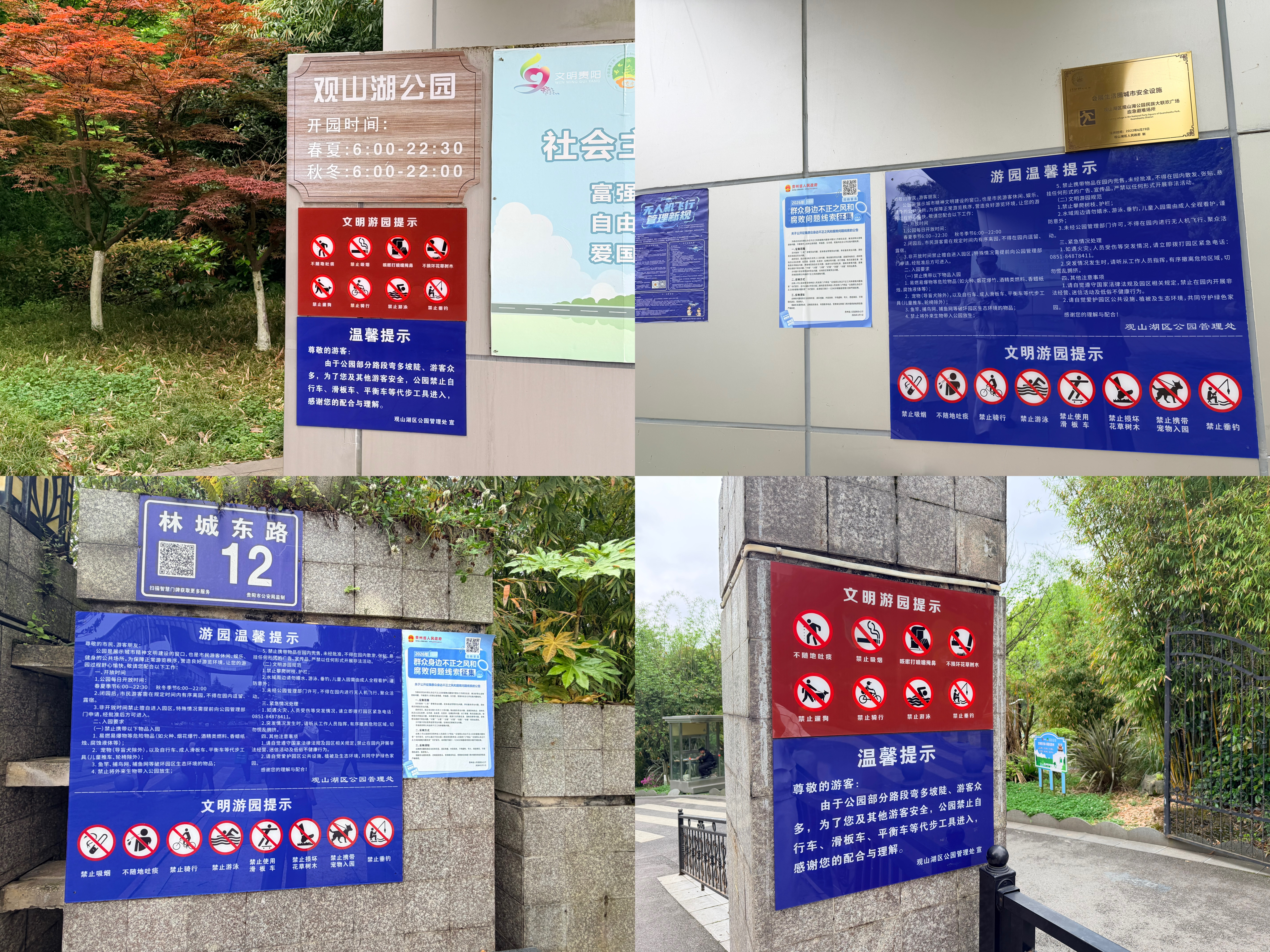 不过,观山湖公园的骑行管理并非“一刀切”——考虑到亲子游园需求,在家长的陪同下,小朋友的小单车、踏板车可入园。园方推荐家长带着小朋友在地势开阔的民族大联欢广场骑行,避开人流密集的主步道。安保人员也会现场巡逻引导,兼顾游客安全与游玩乐趣。
