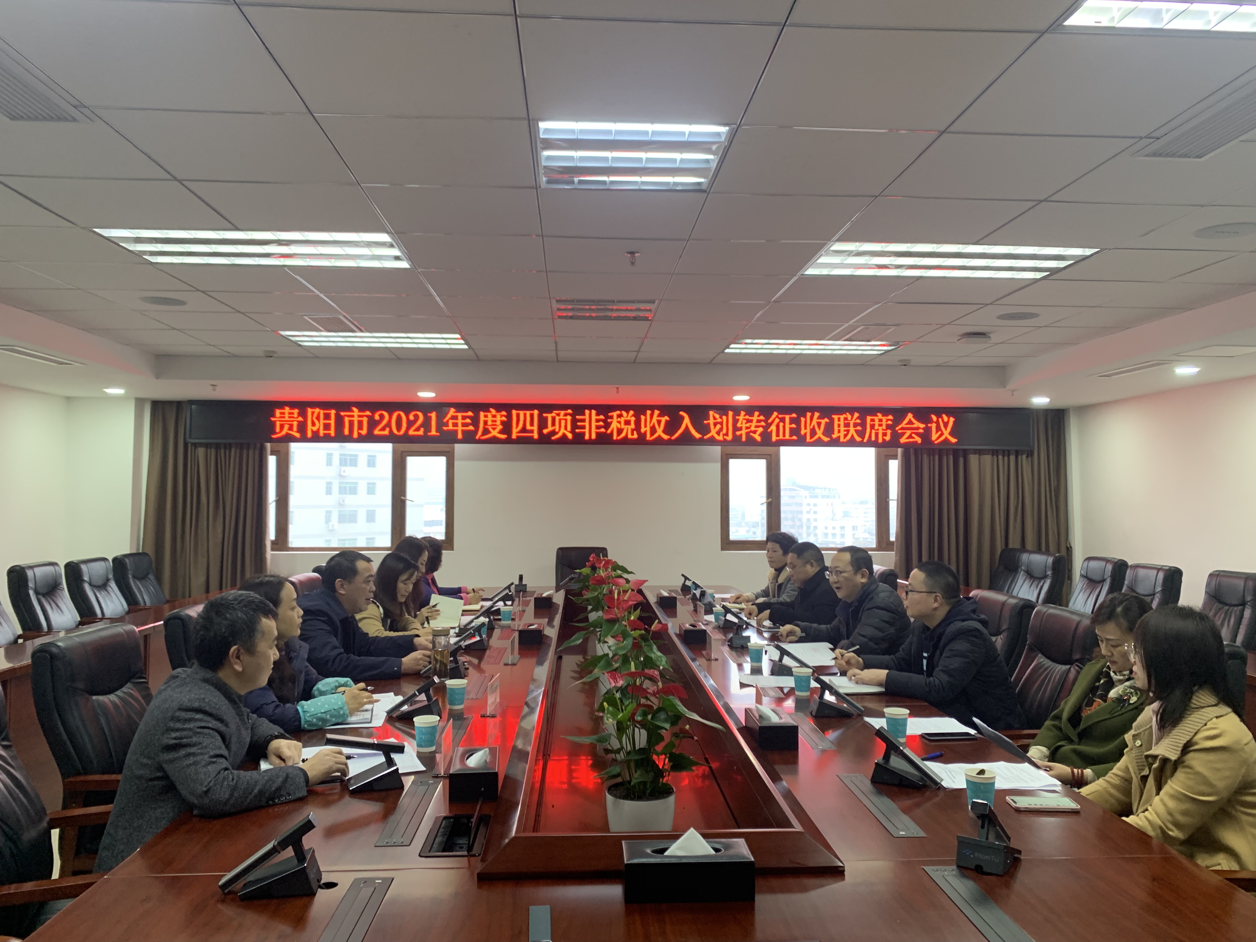 为平稳有序做好贵阳市2021年度四项非税收入划转征收工作,优化缴费服务,2021年2月2日下午,贵阳市税务局组织召开水土保持补偿费等四项非税收入划转首月征收联席会议。市财政局、市税务局、市人民防空办公室、市水务局分管领导及业务科室负责人参加会议。会议由市税务局党委委员、总经济师孙华主持。