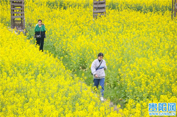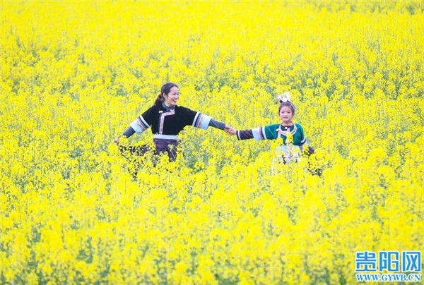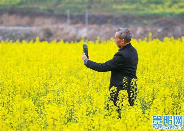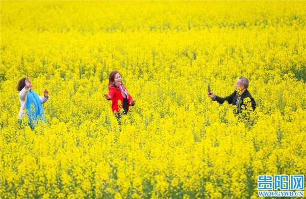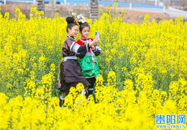 贵阳网讯 2月16日,游客在贵州省黎平县肇兴镇皮林村油菜基地赏花留影。春节假期,随着气温回暖,该村成片的油菜花竞相开放,形成金色的花海,吸引人们踏春赏花,感受春天的气息。