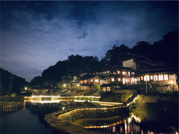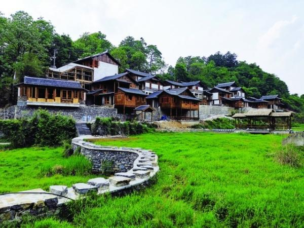 房前屋后繁花绿草,鸡鸣狗吠间鸟语花香,迎面而来的风景美若画卷……走进山王庙村,只见一幢幢原木青瓦的吊脚楼沿着步道一字排开,吊脚楼下两个梯田式的池塘里倒影着青山和房屋。